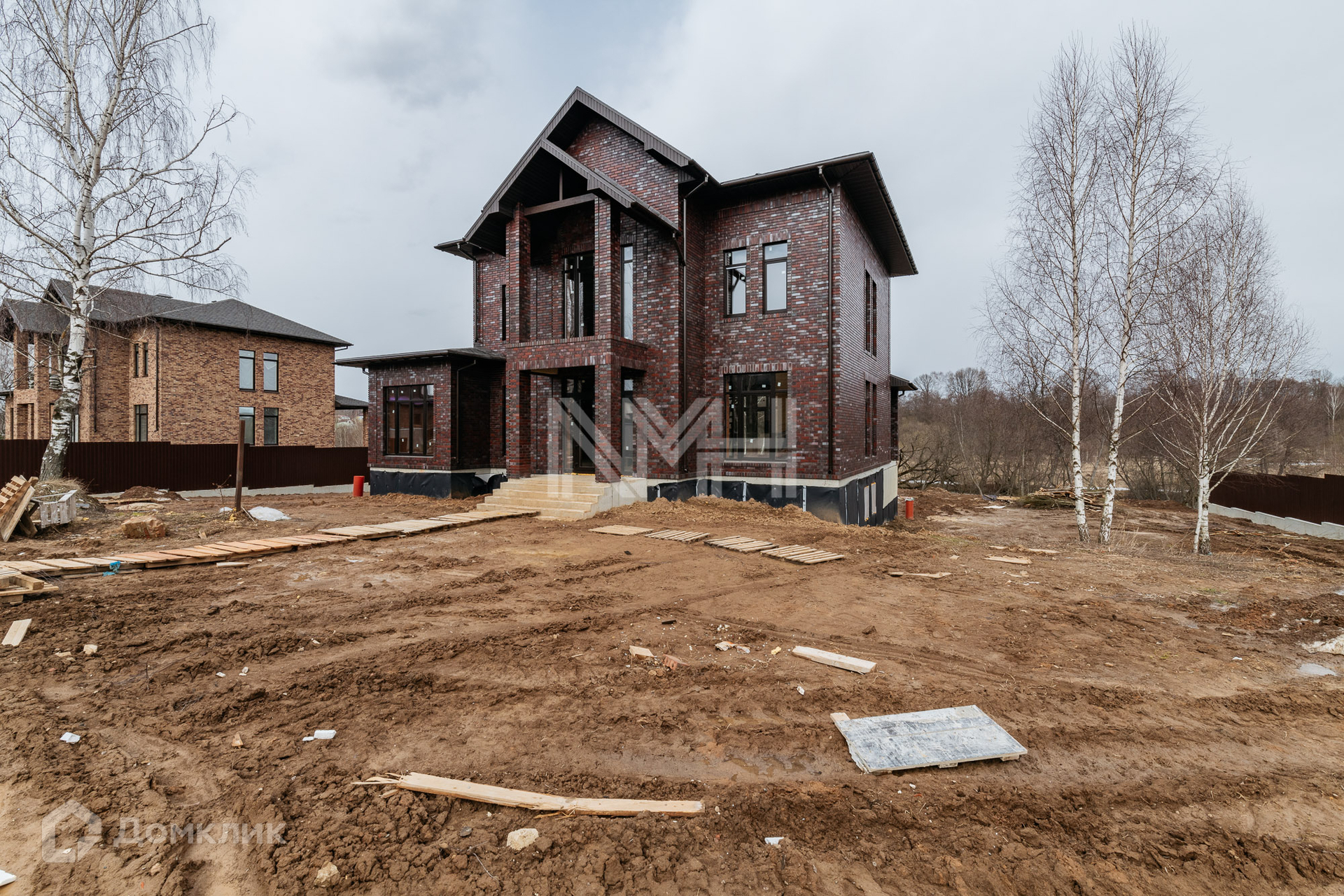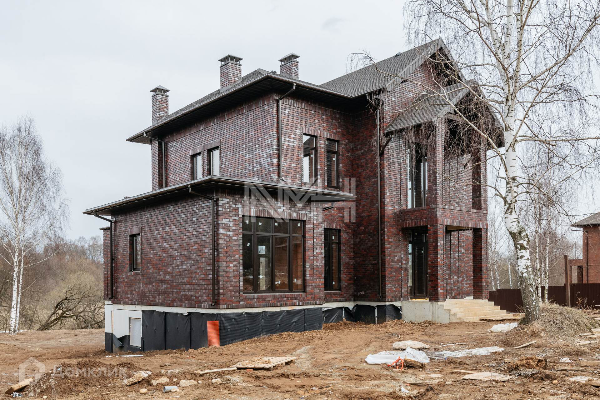 Фасад выполнен под ключ; стены — керамический кирпич, утеплитель, немецкий клинкерный кирпич, перекрытия монолитные. Кровля — мягкая черепица, установлена водосточная система. Тройные стеклопакеты. Дом просторный, светлый, с высокими потолками, балконами. Высокое качество строительства.