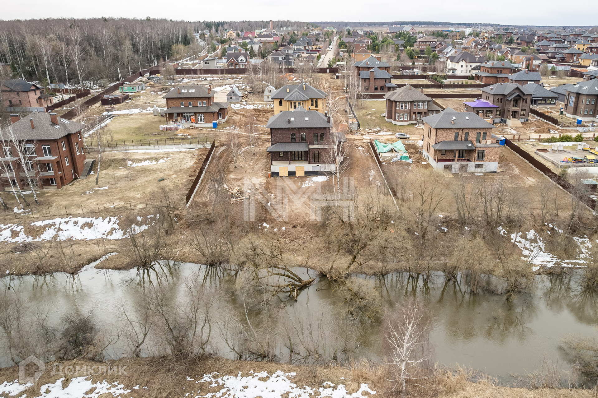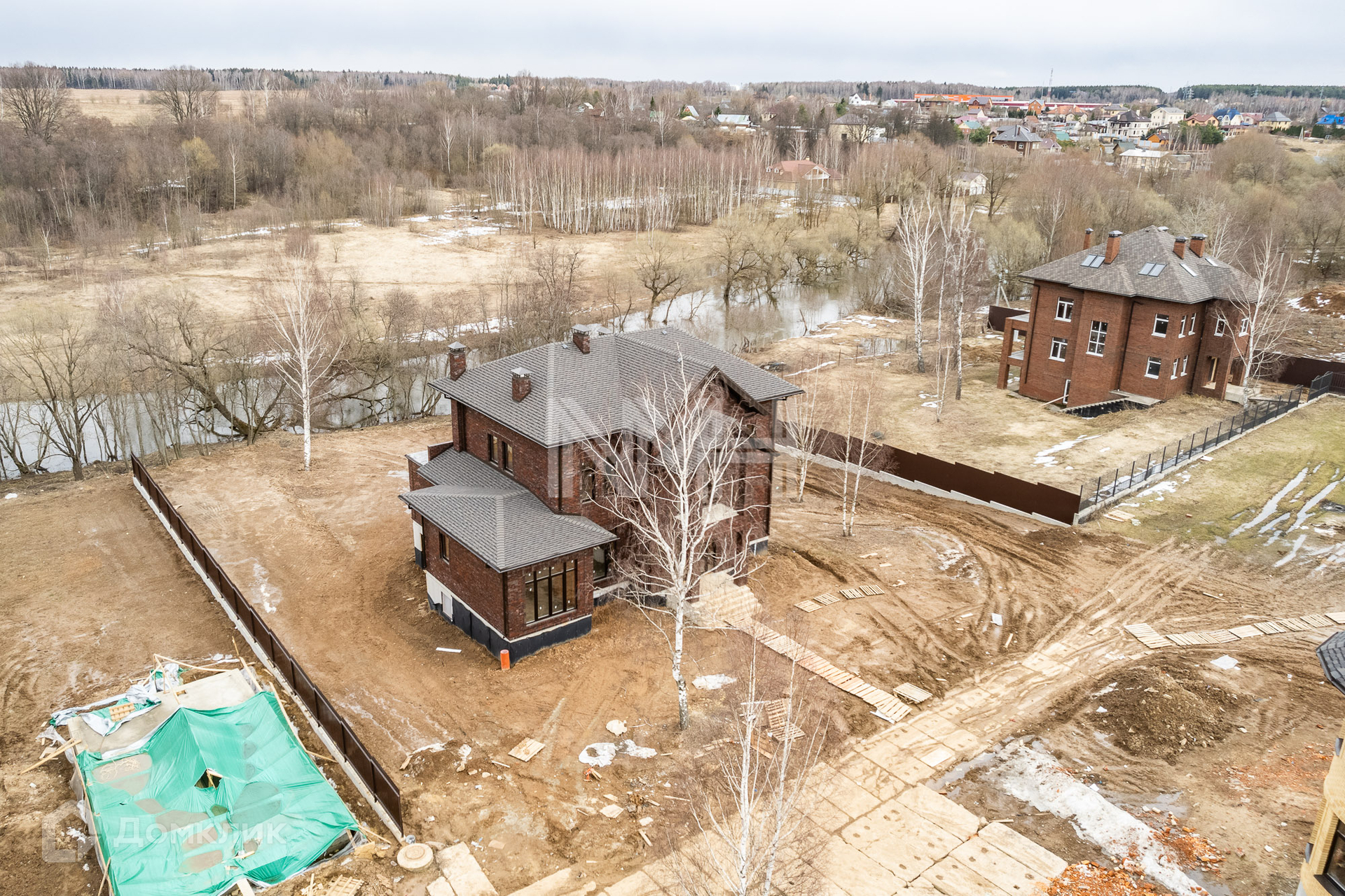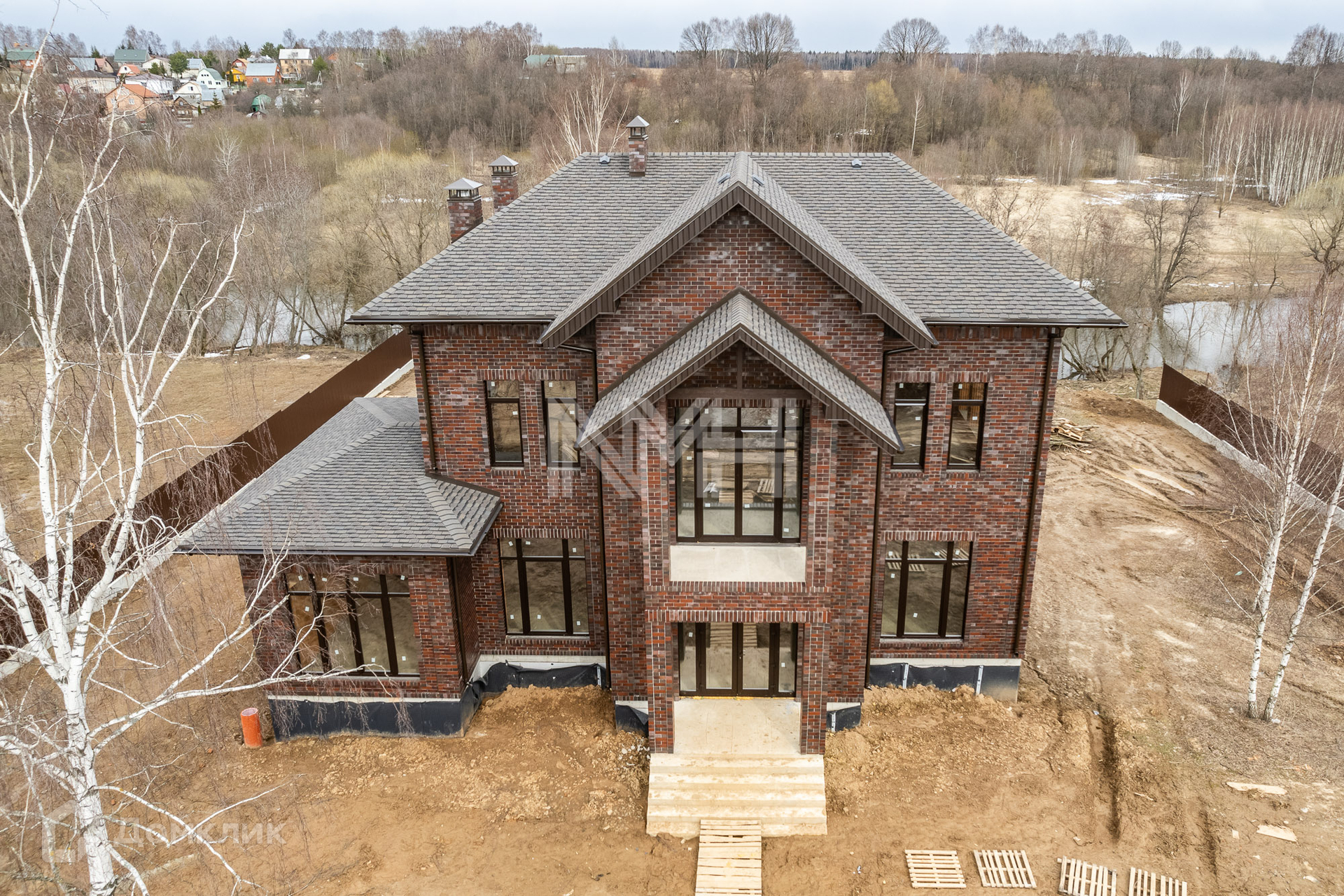 Кирпичный коттедж 500 кв. м без отделки на участке 18,3 сот. (+6,8) на береговой линии реки Десна в поселке бизнес-класса «Новая Ильичевка». Поселок расположен в 25 км от МКАД по Калужскому, территория Москвы.