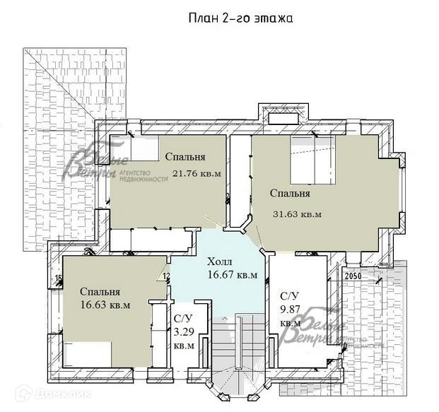 2-ой этаж: свободная планировка 107 кв.м, площадь балкона 14 кв.м. Предлагается следующий вариант планировки:лестница 17 кв.м, мастер спальня 31.6 со своим санузлом 10 кв.м, спальня 22 кв.м и 17 кв.м, санузел 3 кв.м;.