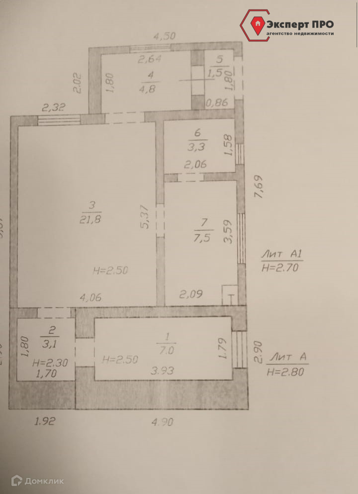 Общая площадь 54.1 м2