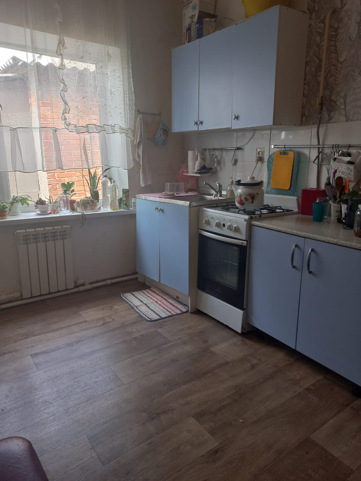 Дом кирпичный-3 спальни , просторная кухня. Санузел совмещённый, все коммуникации заведены, высокие потолки