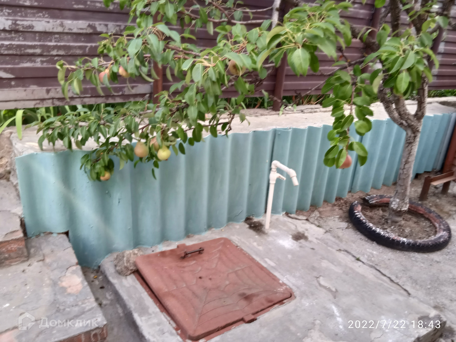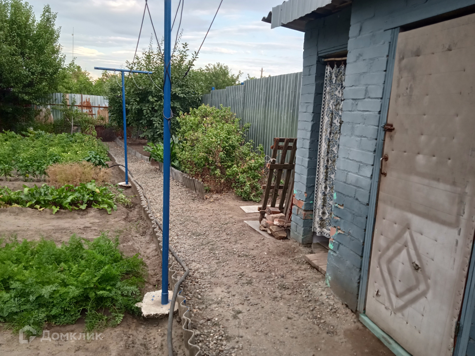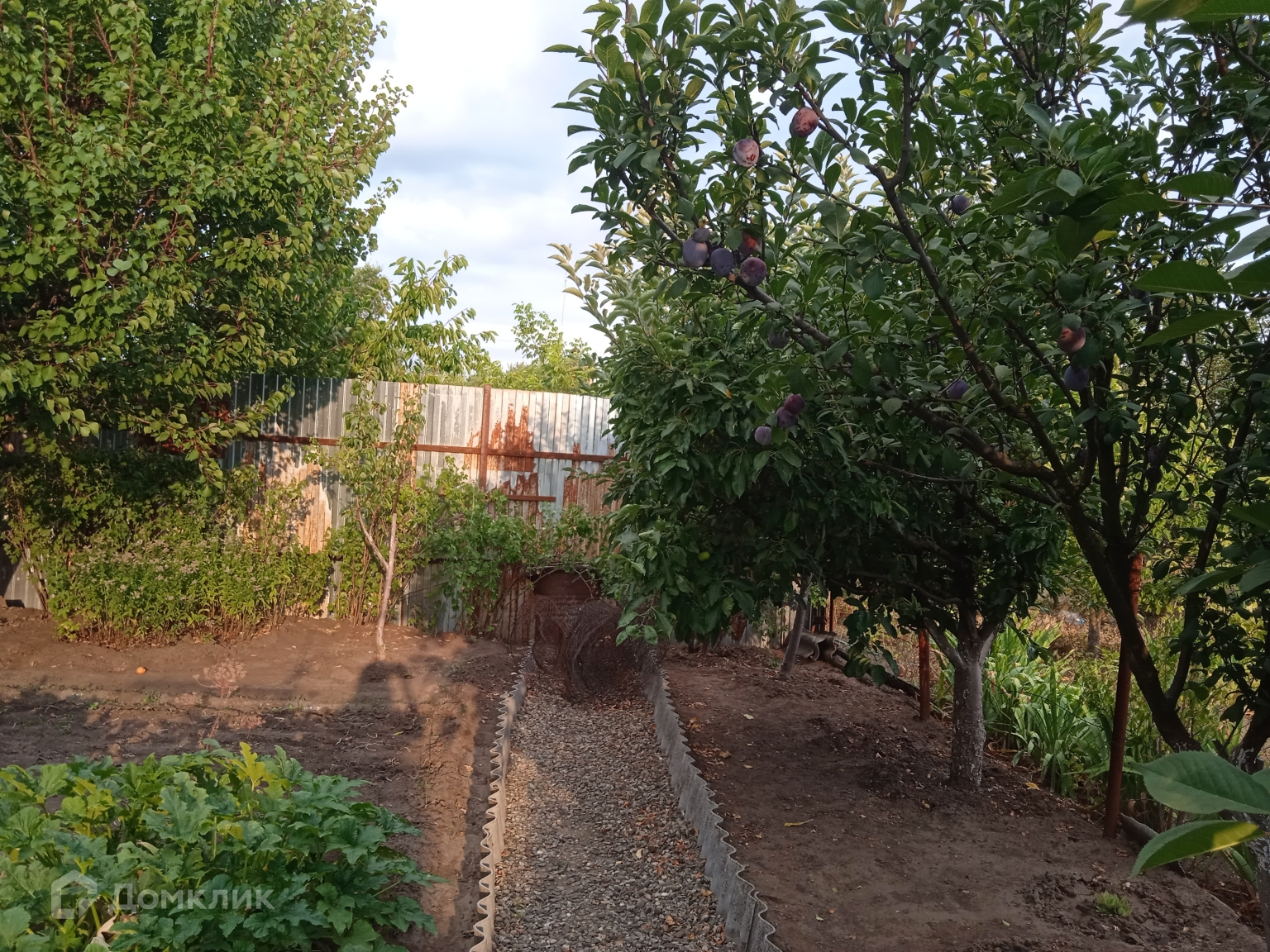 Двор забетонирован. Есть навес - летняя кухня с мангальной зоной и беседкой из винограда, летний душ/туалет, ухоженный огород с овощами, ягодами и фруктовыми деревьями.
