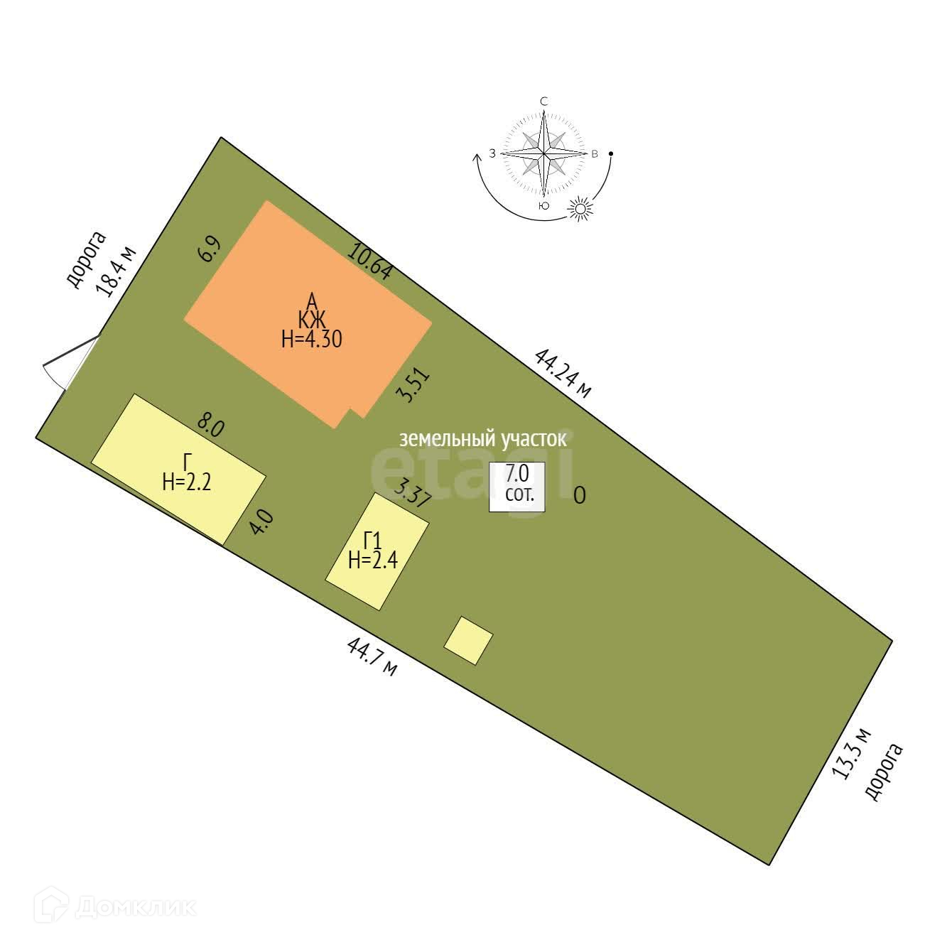 Дом и участок находятся на возвышенности, поэтому здесь не бывает наводнений.