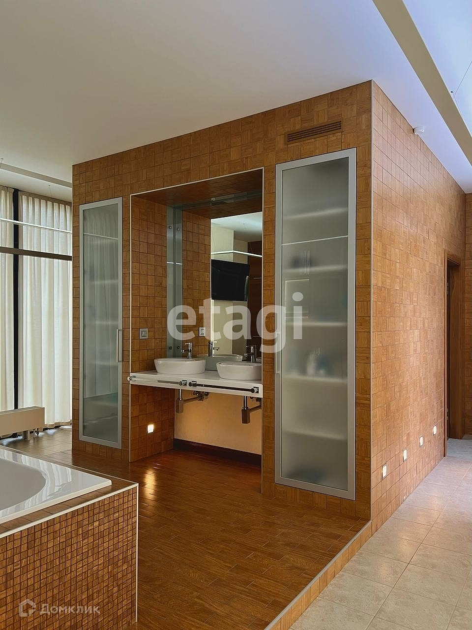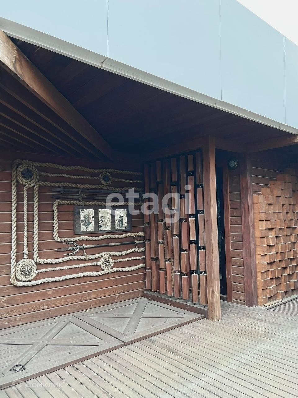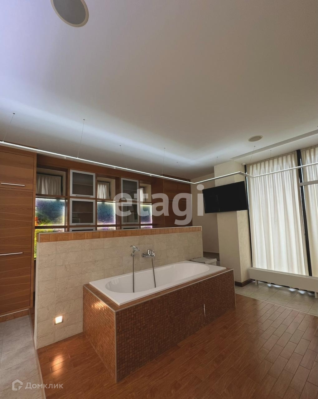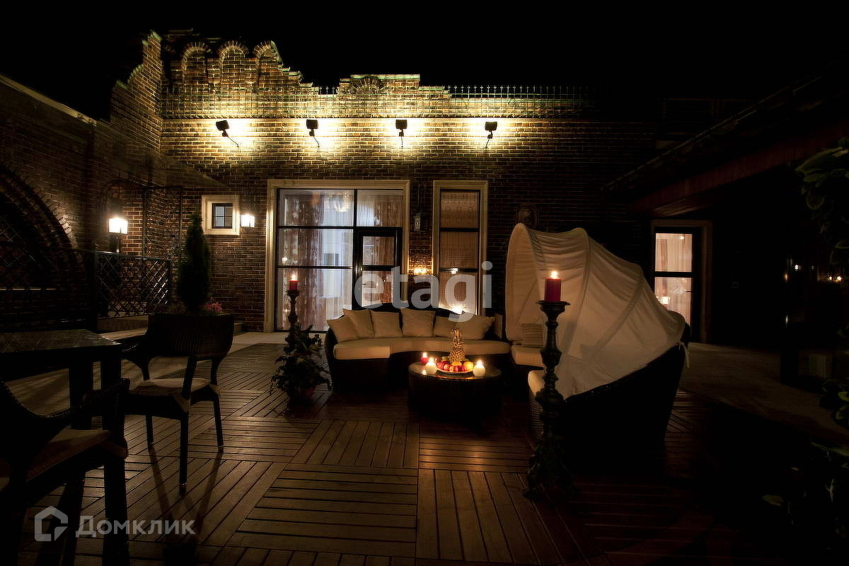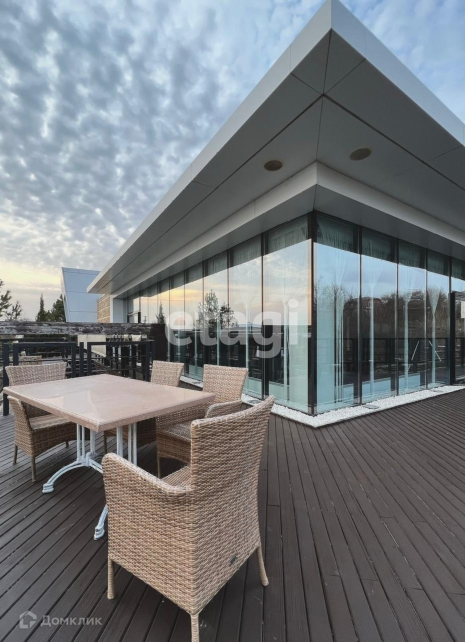 Имеется банный комплекс, купель, открытый подогреваемый бассейн (размер 64) предназначен для использования в зимний период. Эксплуатируемая кровля.
