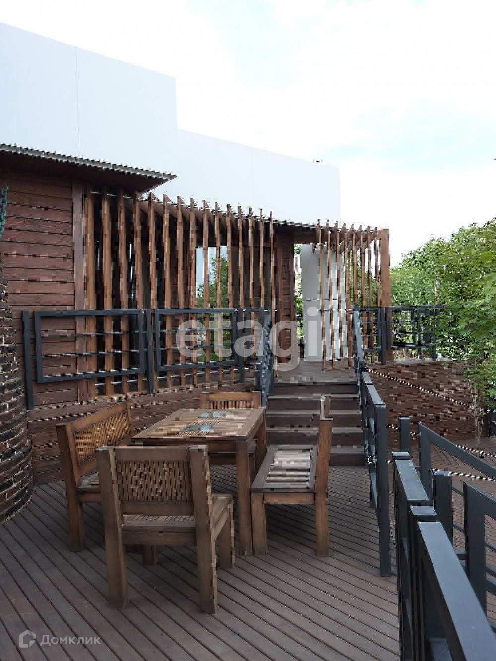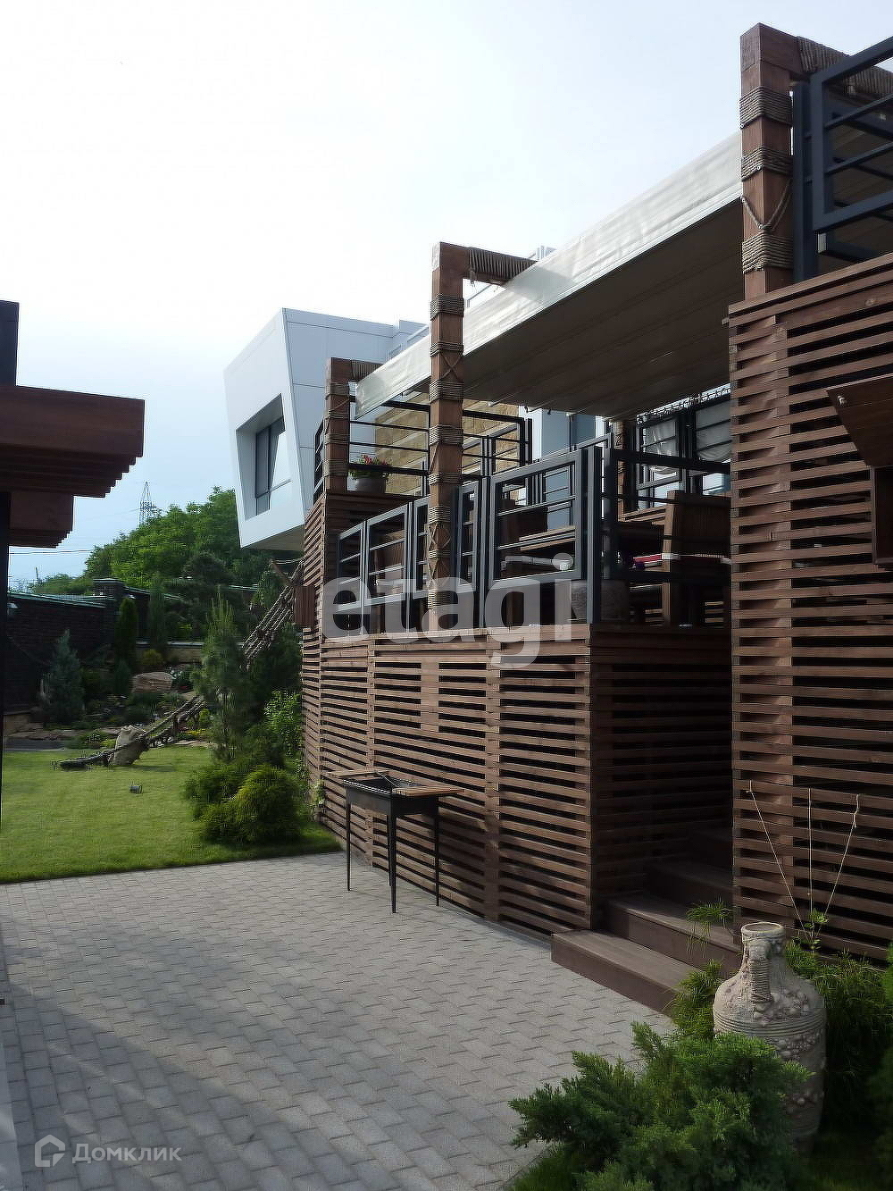 Материал стен: брус, кирпич. Земельный участок - 14 соток. На территории парковка на 2 машины, гараж, зона барбекю, открытая веранда.