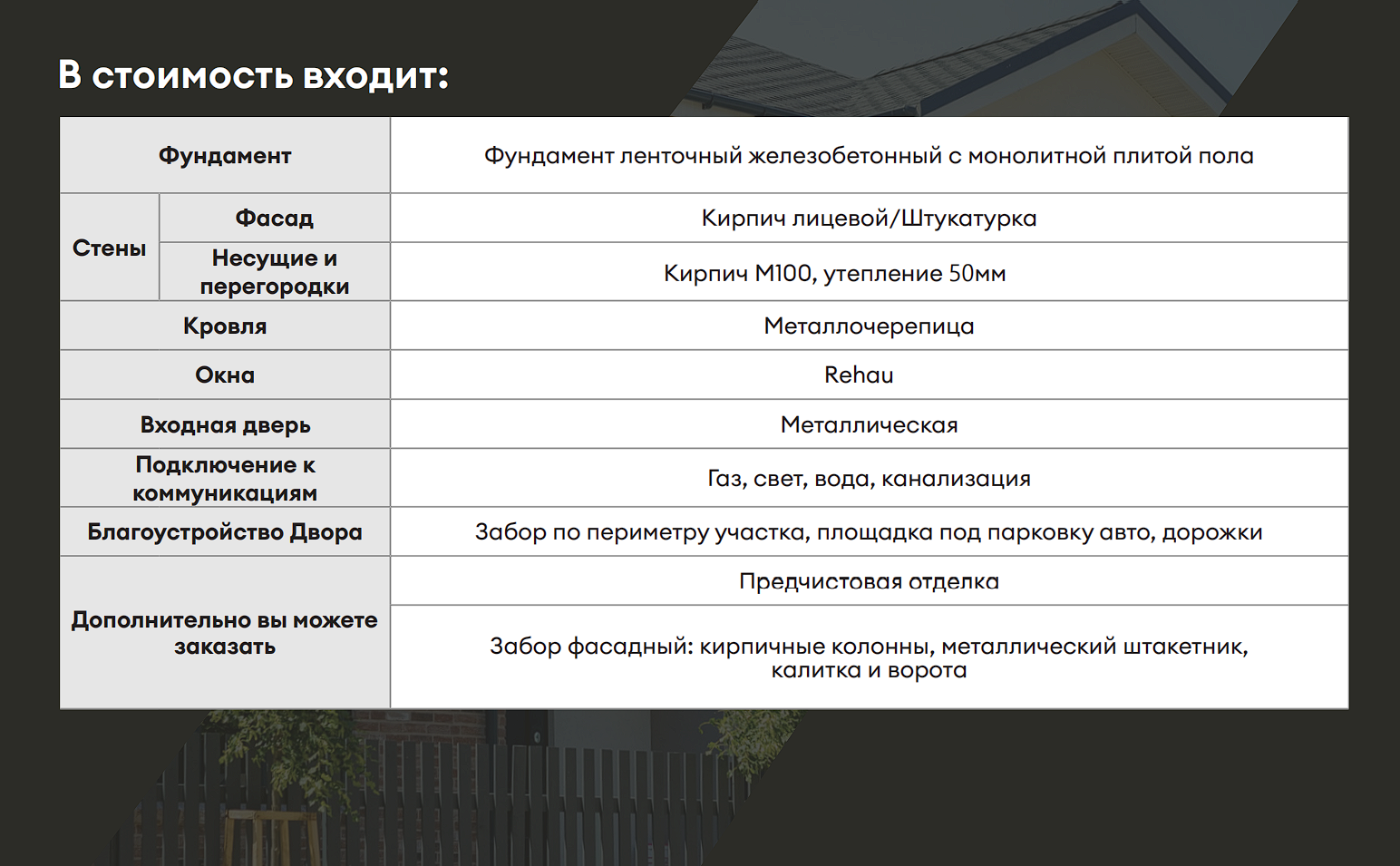 Дома сдаются в следующей комплектации: