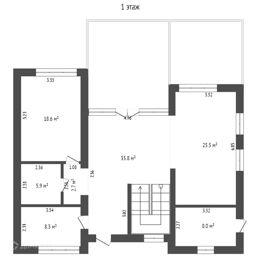 Дом имеет 3 выхода. Центральный, на веранду и на парковку. С парковки можно сразу зайти в дом