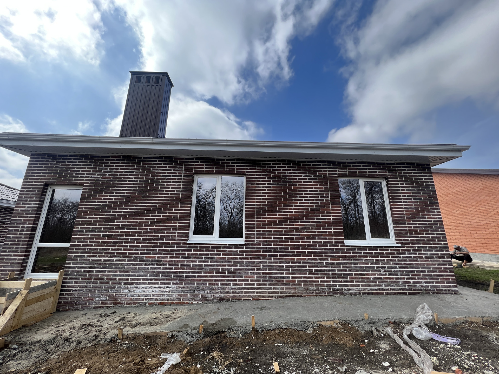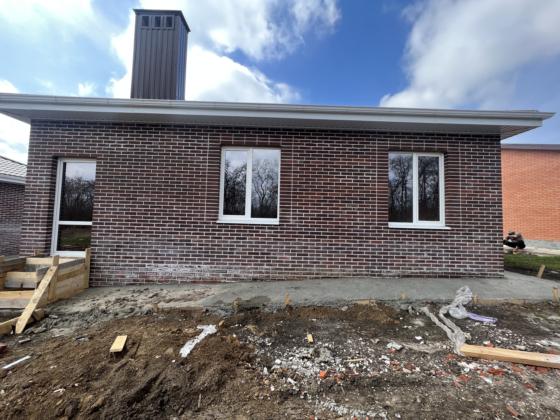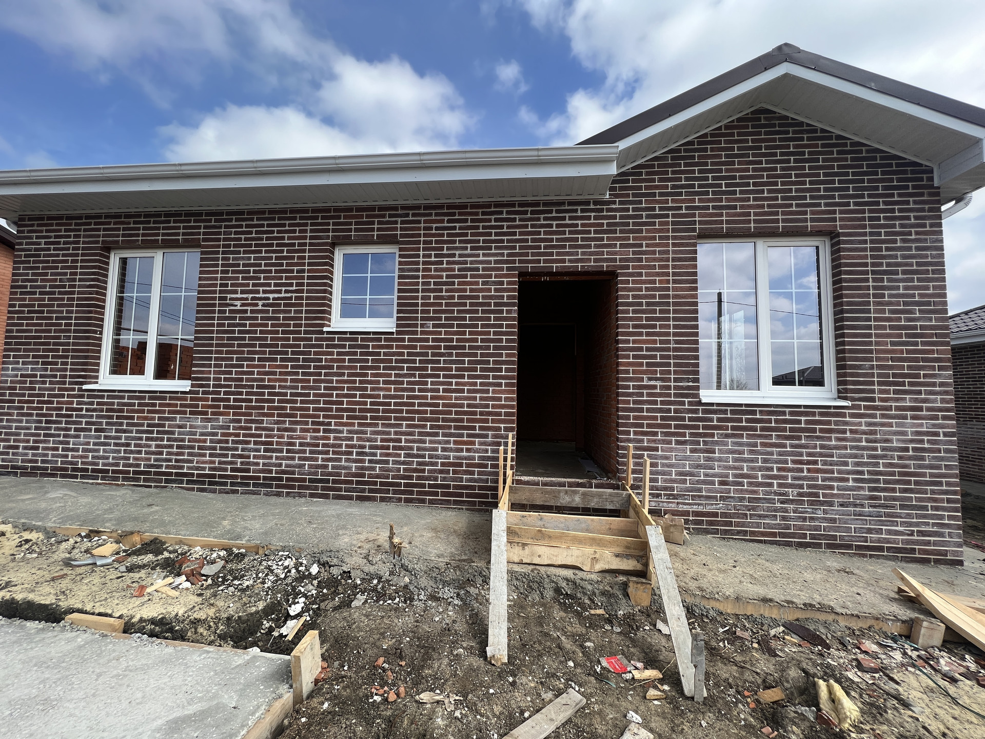 Дом построен полностью из кирпича. Фото сделаны в процессе строительства, окончательный вариант отделки "под ключ"-без сантехники.