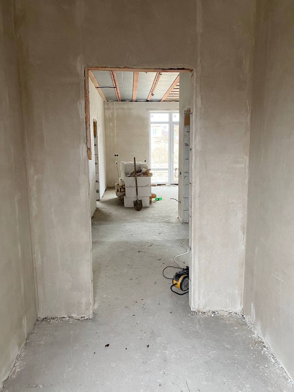 Штукатурка стен произведена под маяк, теплые полы.