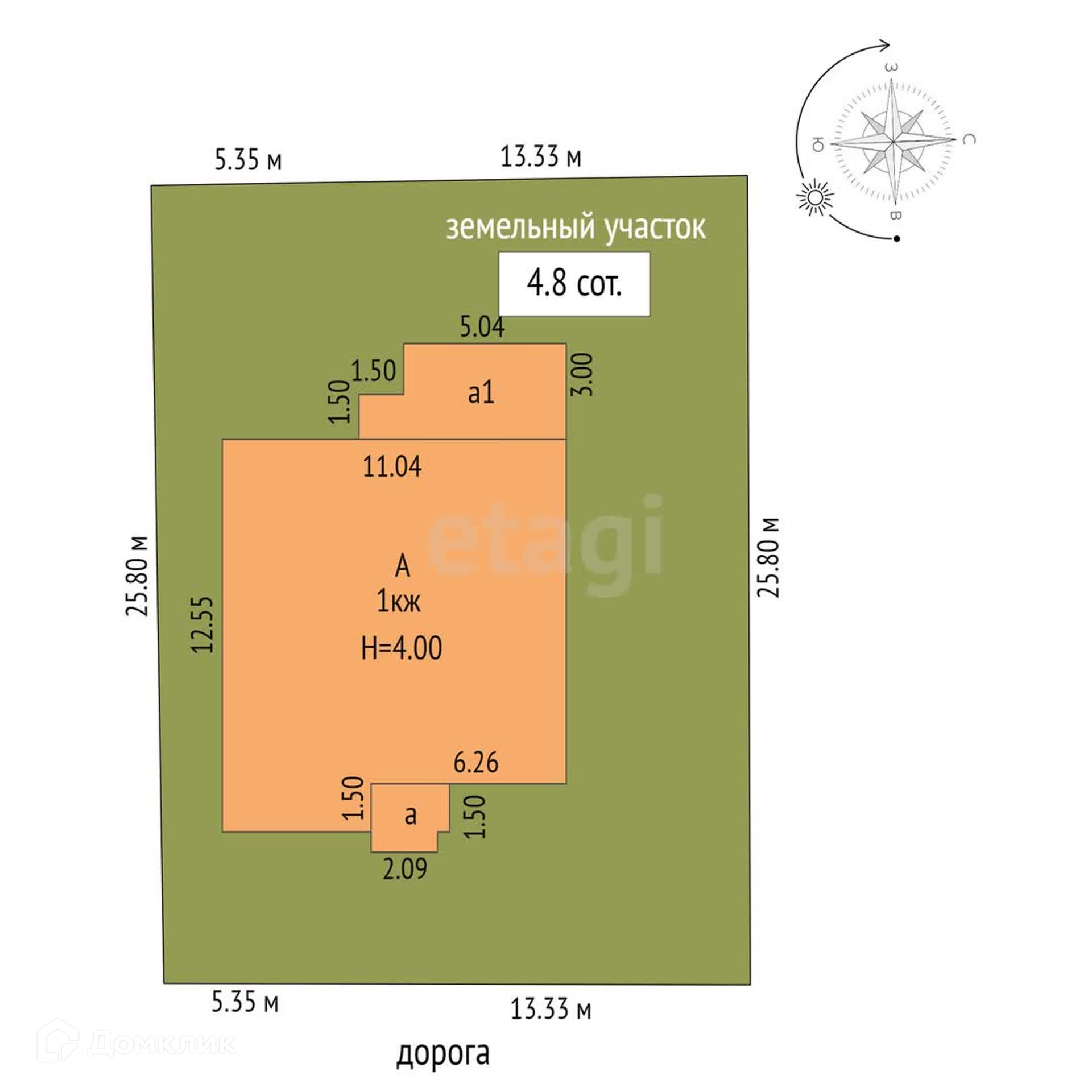 Площадь участка 4.8 сот.