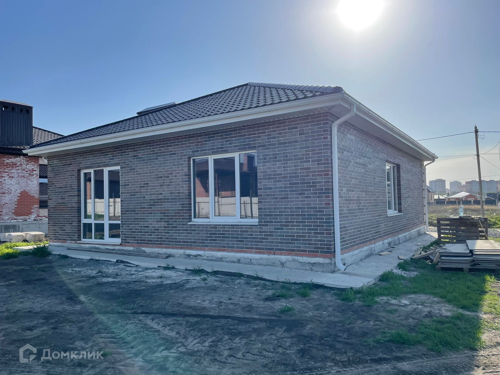 Дом полностью кирпичный, отмостка по периметру