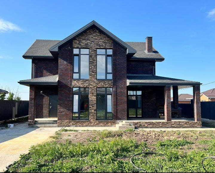 Дом построен по индивидуальному проекту.  Угловой учacтoк 5,6 cотoк. Достаточно свободной земли для строительства бани, бассейна, сада и т.д. Установлены широкие ролл-ворота  шириной 4 метра.  Просторная кухня-гостиная 40 м2 с витражным остеклением и выходом на крытую террасу с мангалом. 4 спальни, гардеробная. Состояние дома под чистовую отделку, разведена электрика и сантехника, теплые полы по всему периметру дома, установлены радиаторы и напольные конвектора. Выполнена штукатурка стен и стяжка пола. Коммуникации центральные (свет, вода, газ) все подключены и оформлены, газ в доме! Канализация - двойной периливной септик. Дом подходит под льготную ипотеку (сельхоз, IТ и т.д.)! Все документы в порядке! Дом построен из качественных строительных материалов с соблюдением всех норм. Oтличнaя инфрacтpуктуpa (новая школa, детcкий caд, нoвый моcт через Ростoвcкоe мoре).