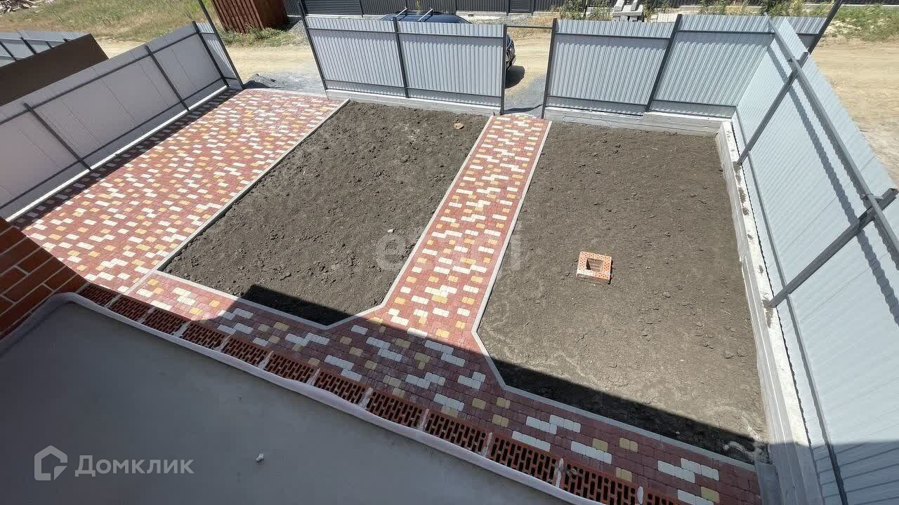Двор выложен тротуарной плиткой,газоны готовы к высадке новых растений.