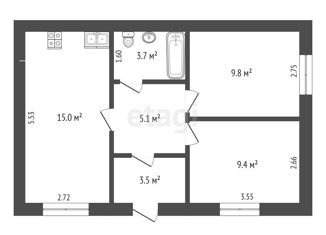 Общая площадь: 35.8 м2