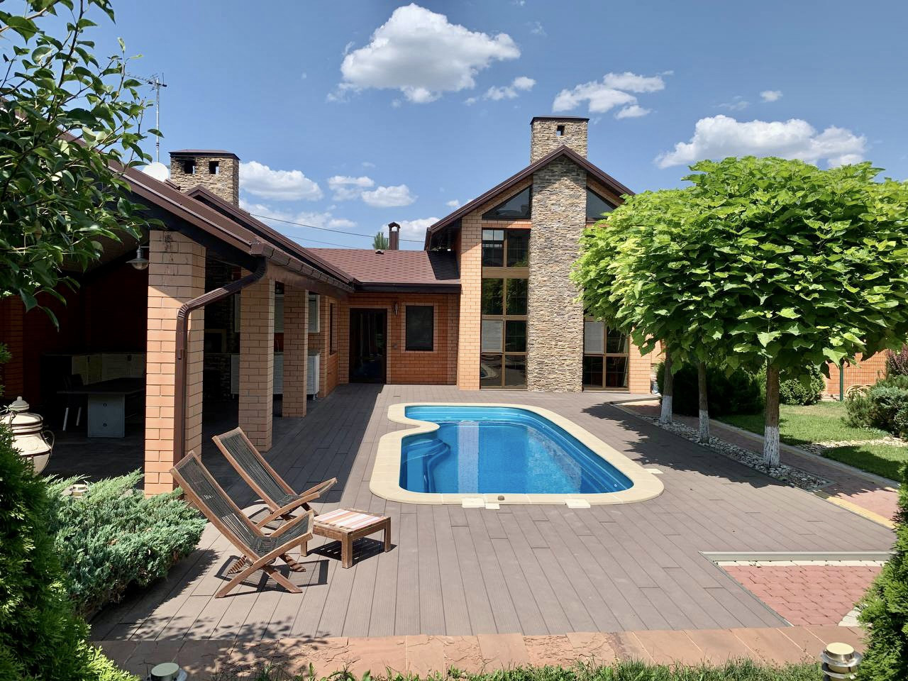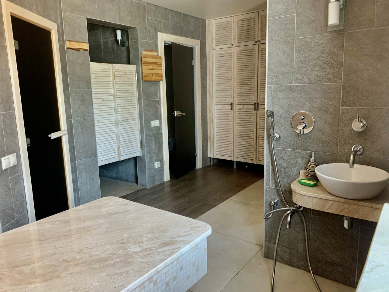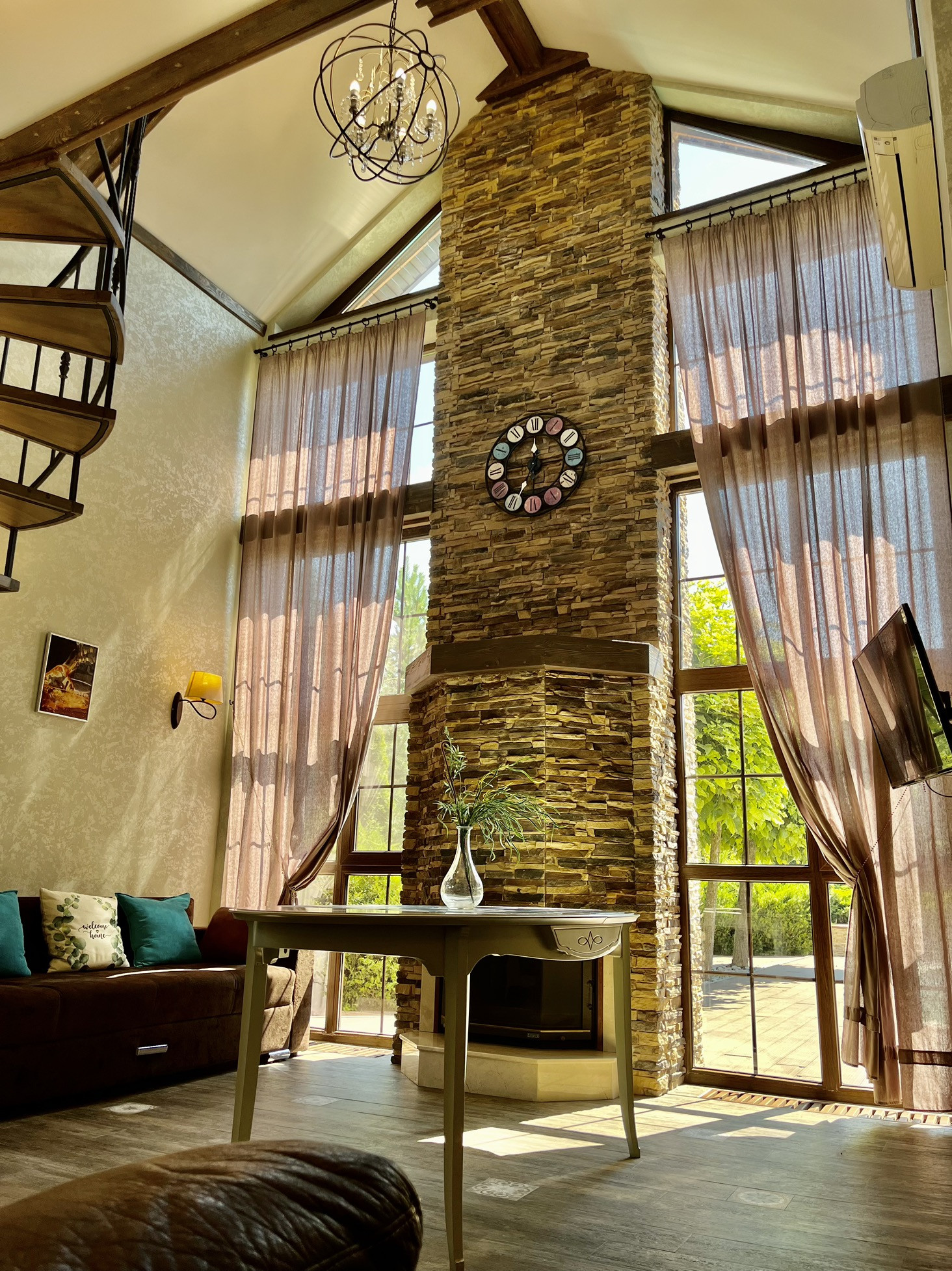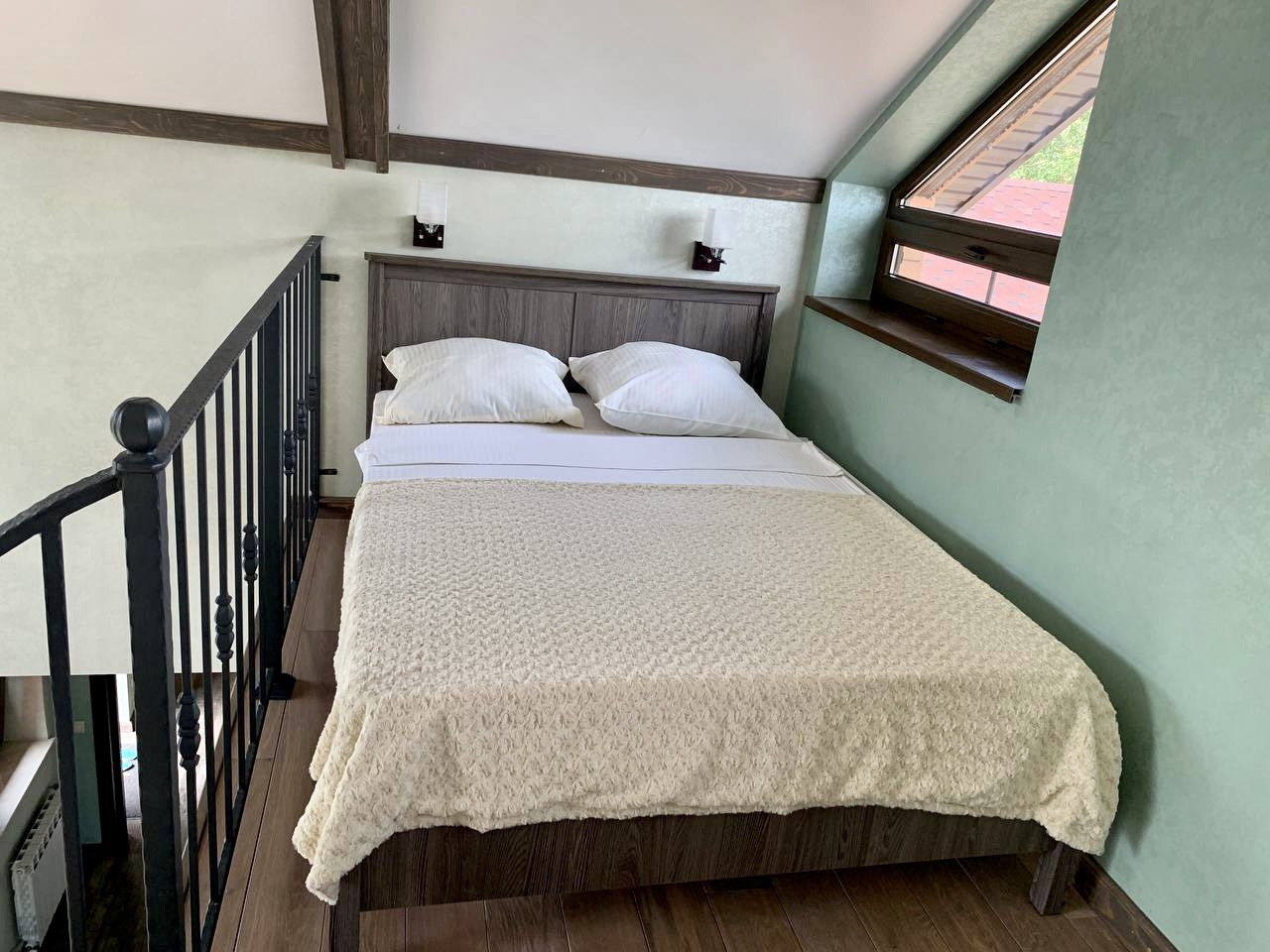 • ДОМ в стиле «Шале» 80м2 со всеми удобствами (холл, кухня-гостиная с открытым вторым светом и камином, SPA-зона с каменным массажным столом, на 2 этаже двухспальная кровать (всего на территории 5 спальных мест);