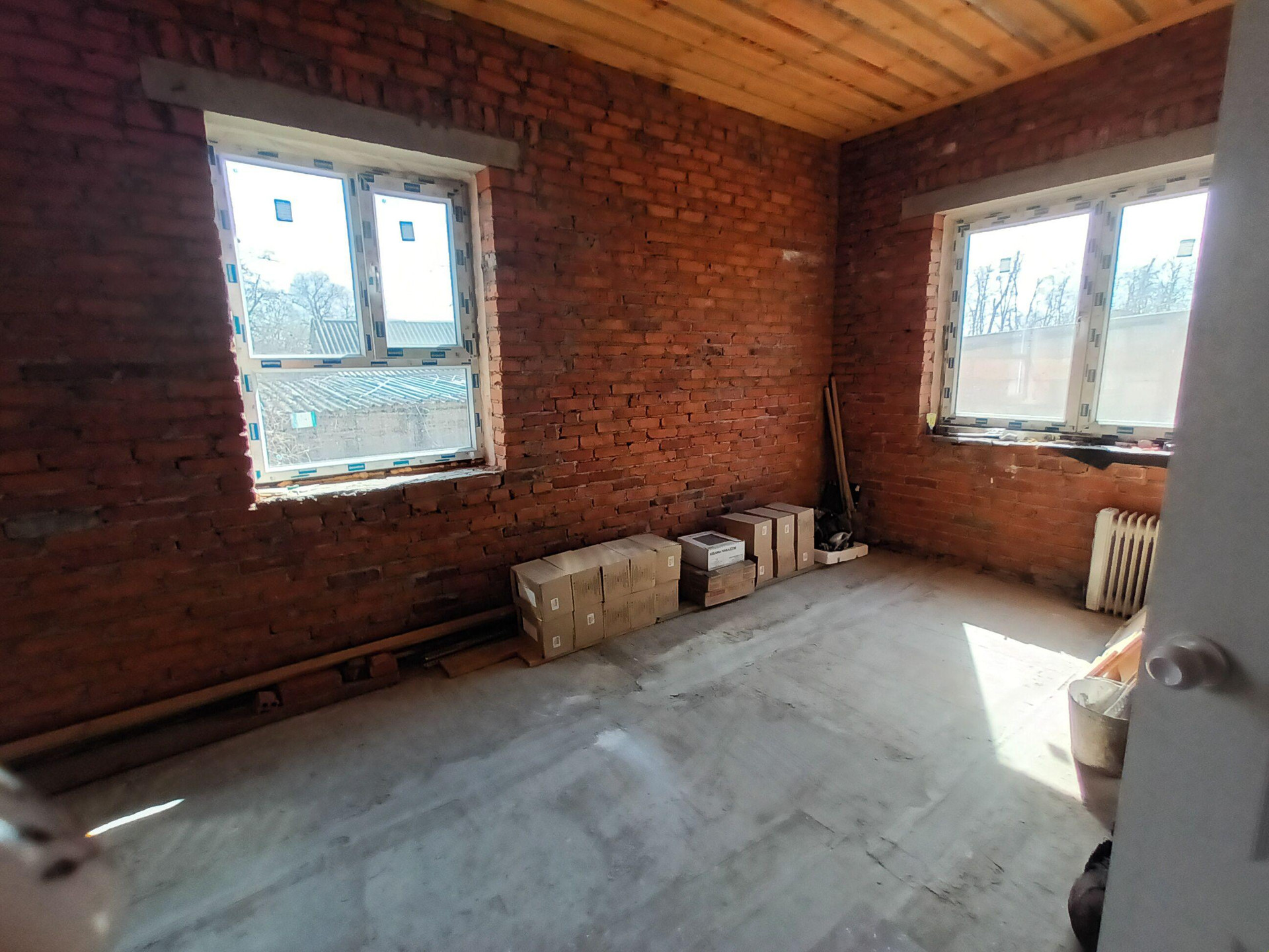 Продаётся кирпичный дом 100 квадратных метров, на участке 15 соток. Дом строили для себя, по схеме термо (зимой тепло, летом прохладно). Цоколь 1 метр, фундамент ленточный по всему параменту дома 90 см. Дом продаётся в предчистовой отделке (под ремонт), разводка проведена, электроэнергия подключена (3 фазы, 15 КВТ). Холодная вода центральная, имеется бойлер. Газ на участке, осталось только подключить.