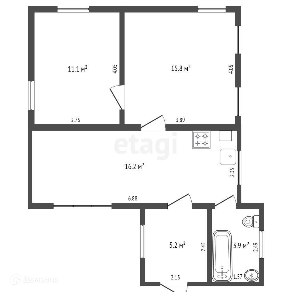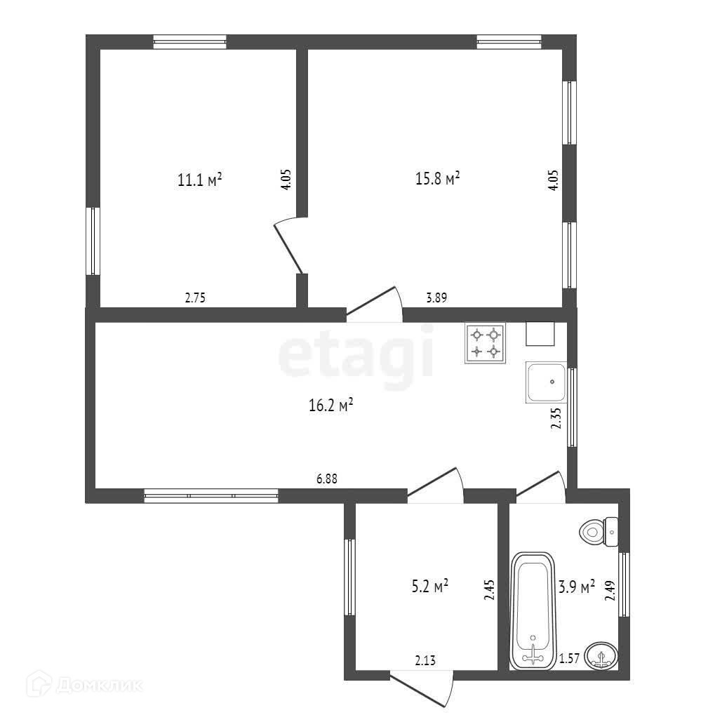 Общая площадь 48.3 м2