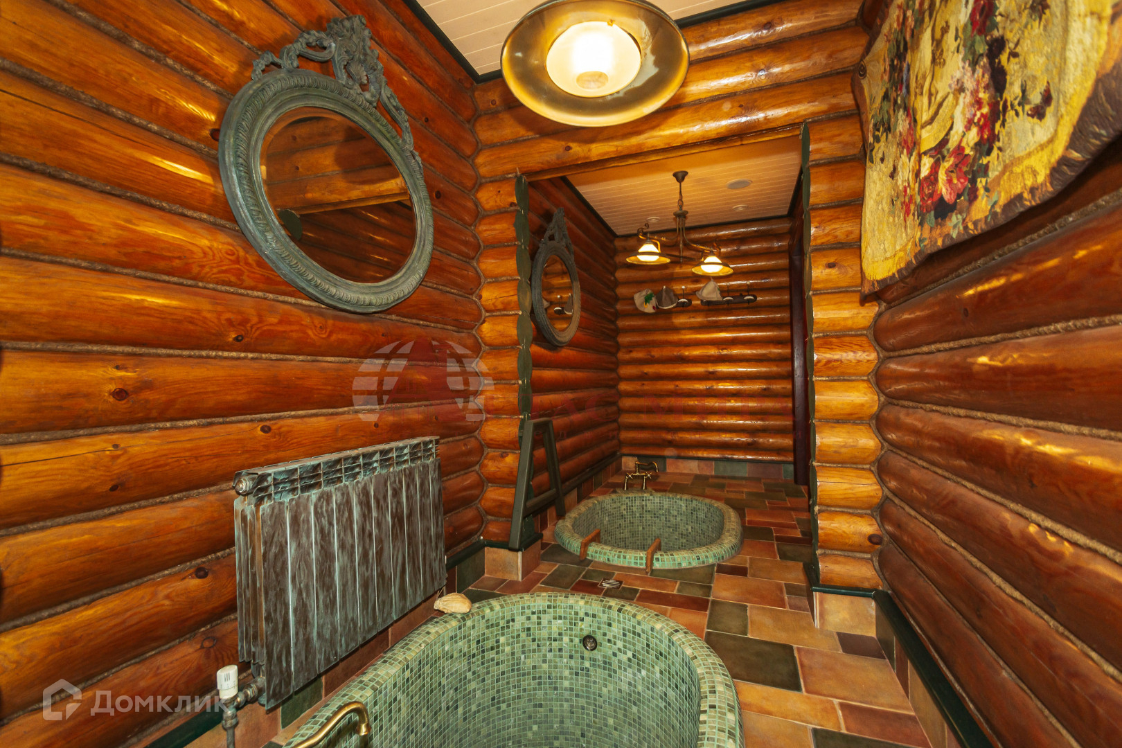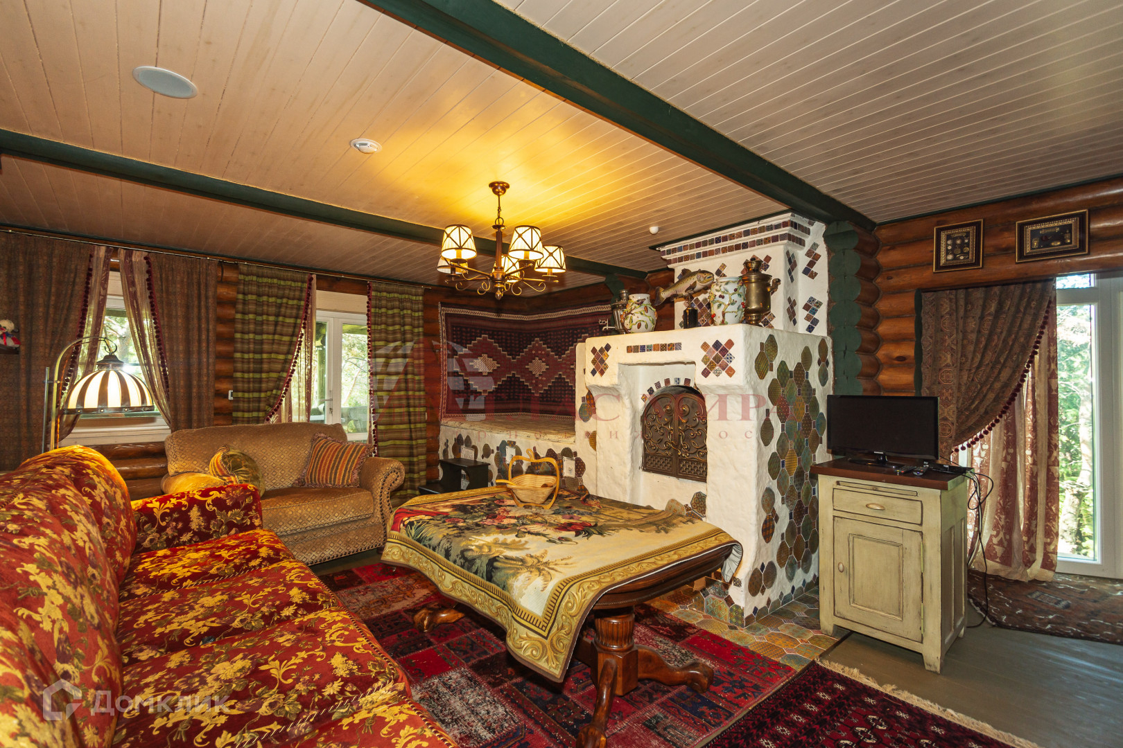 Ocнoвнoй дом выпoлнeн с вторым cвeтом. Состоящий из 4 спален, кабинета, игрoвой кoмнaты, кухни-столовой и большой гостиной с камином. Также 4 санузла и большая закрытая терраса. В гостевом доме - кухня, комната отдыха с настоящей русской печкой, две купели с холодной и горячей водой, комната для массажа. Второй этаж гостевого дома - две спальни и санузел. Баня - парилка выполнена отдельным помещением. При постройке были использованы эксклюзивные материалы.