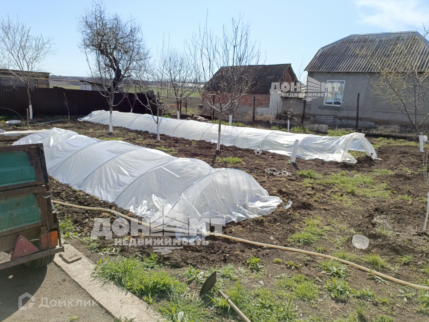 На участке хоз. постройки и теплица зимняя с печным отоплением и 2 больших балагана под выращивание овощей .Балаганы новые 2 года высокие очень хорошо подойдут для выращивания огурцов и высокорослых помидор.