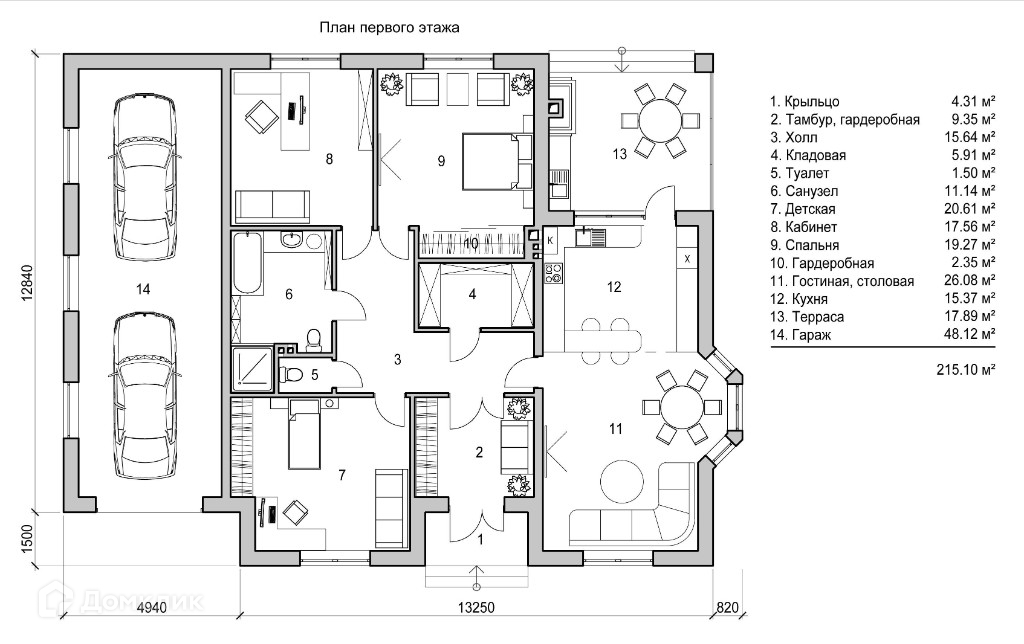 Общая площадь 215 м2