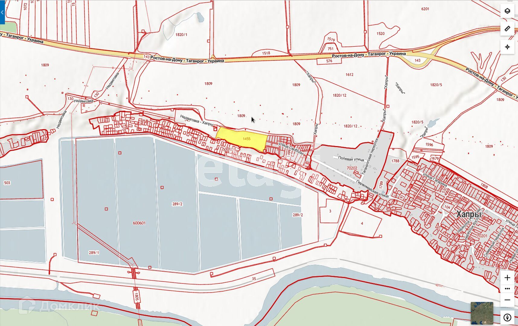 Земельный участок в х. Хапры Мясниковского района Ростовской области, участок правильной формы, в 1 км от трассы Ростов-на-Дону - Таганрог.