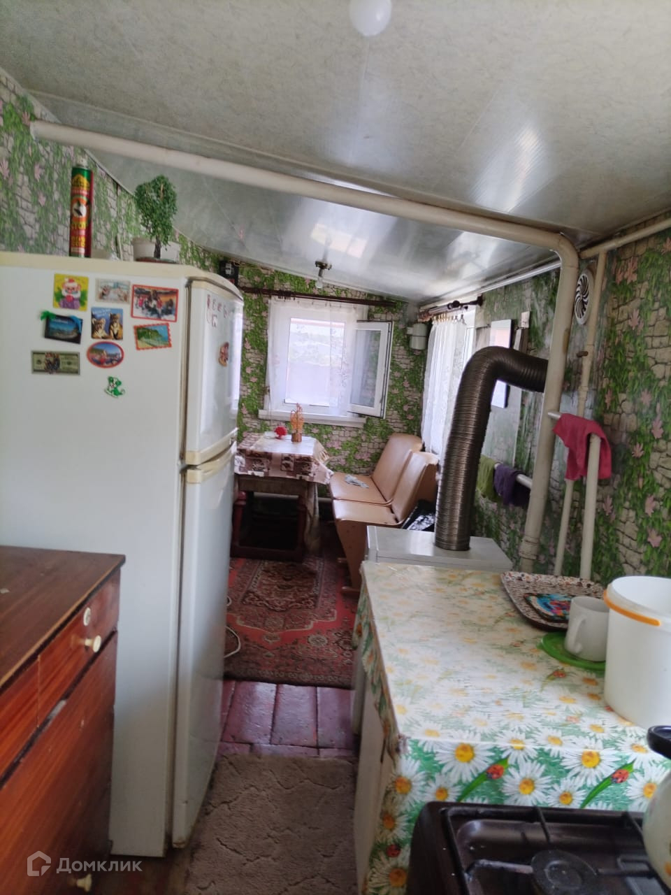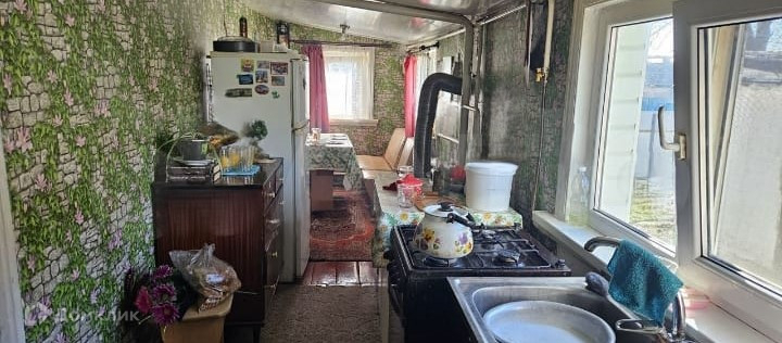 О ДОМЕ: Основной дом — материал постройки — каменный, сайдинг. Год постройки — 1952. Газ заведён. Санузел совмещён из комнат: зал, небольшая прихожая, кухня.
