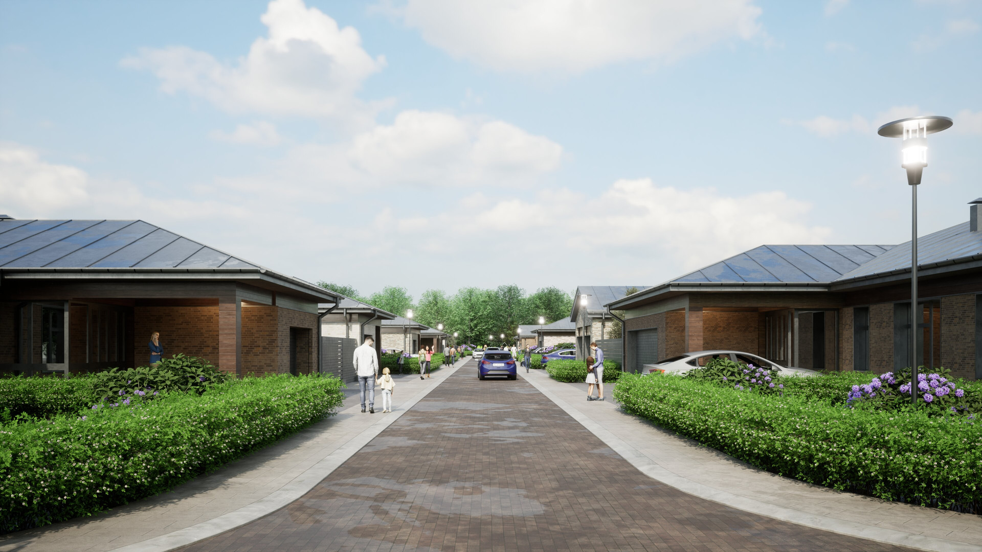 Благодаря единому архитектурному стилю экопоселок выглядит современно и гармонично. На закрытой территории имеется детская и спортивная площадка, а также общая зона отдыха, оборудованная беседками. Мы предлагаем 8 проектов домов на выбранном вами участке. В проект этого дома уже входит гараж на 2 автомобиля 39,6 м².