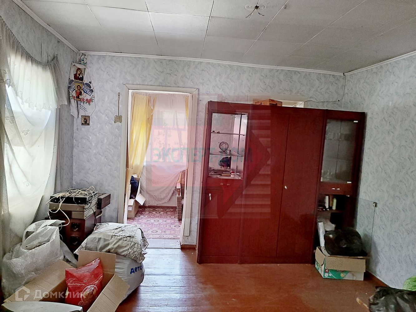 Дом саманный, обложен кирпичом. Крыша шифер. Полы деревянные. Окна деревянные. Потолок навесной. На стенах обои. Электричество в доме. Газ на участке. Воду можно завести централизованно.