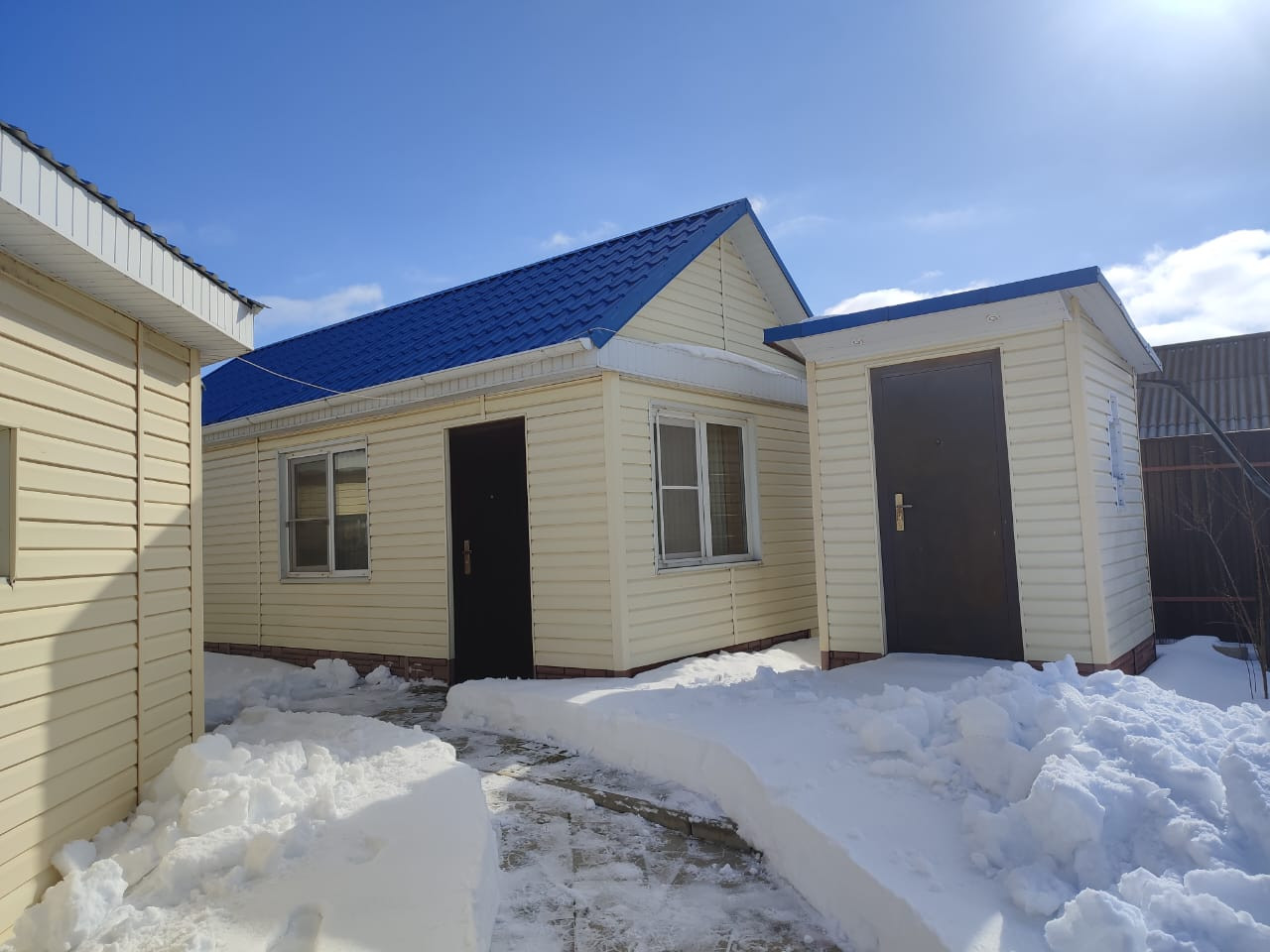 2 Гостевой жилой дом деревянный, фасад обшит сайдингом, 28,1 м2, 2 комнаты: гостиная, спальня, прихожая, большие пластиковые окна.