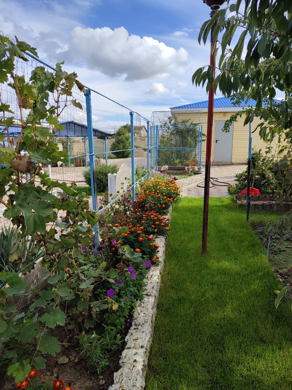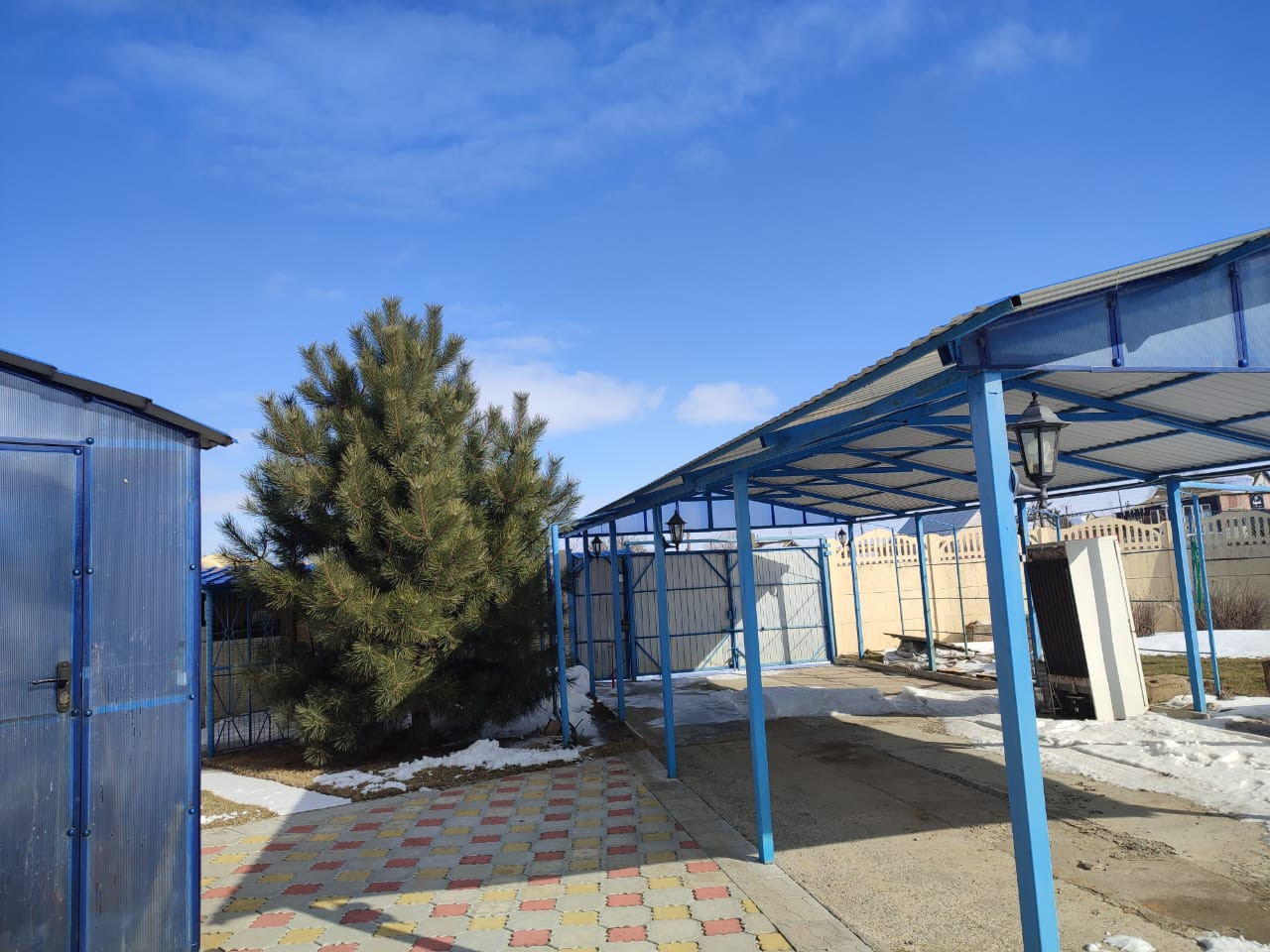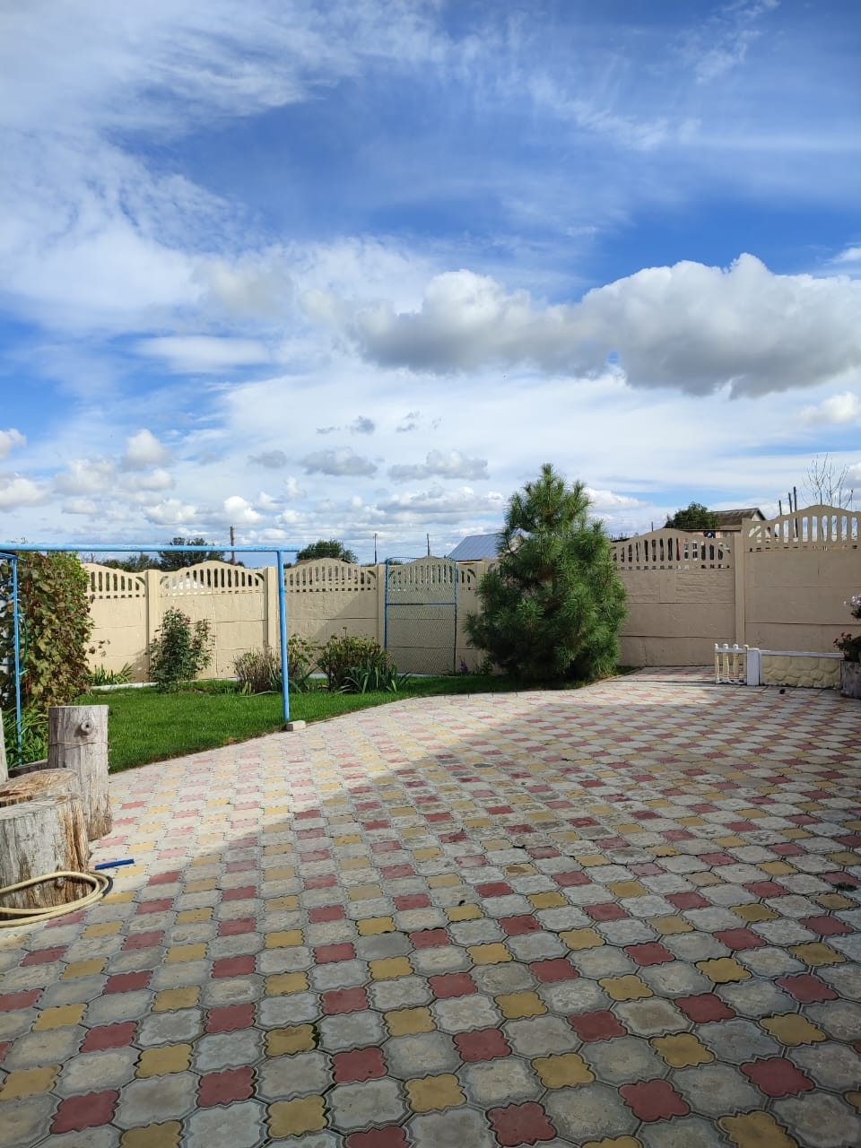 Благоустроенный земельный участок площадью 12 соток с газоном и тротуарными дорожками, множество декоративных и фруктовых деревьев: черешня, абрикос, вишня, груша, яблоня, айва, малина, клубника, виноград. Вымощенная плиткой стоянка для авто с навесом 47,9 м2.