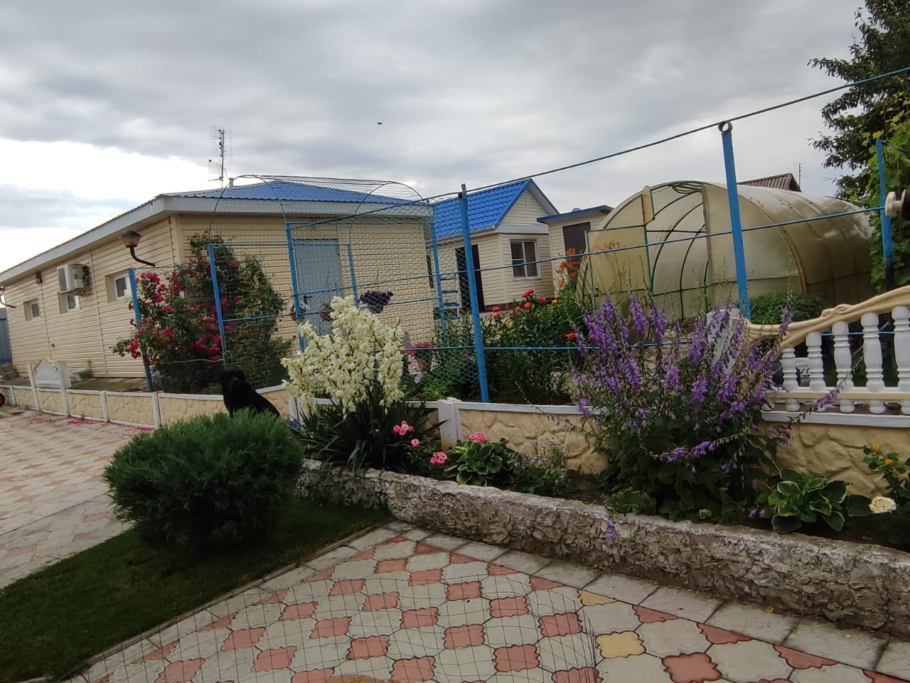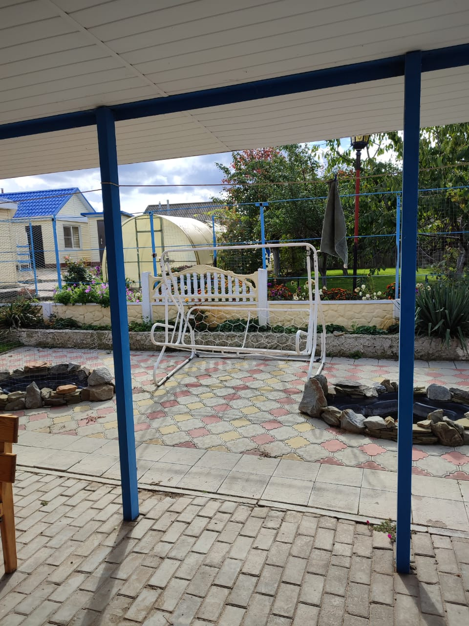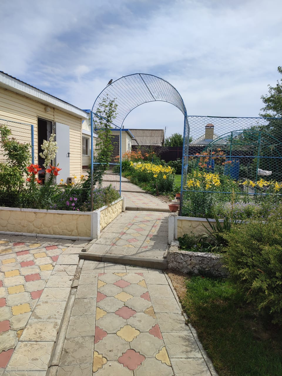 Благоустроенный земельный участок площадью 12 соток с газоном и тротуарными дорожками, множество декоративных и фруктовых деревьев: черешня, абрикос, вишня, груша, яблоня, айва, малина, клубника, виноград. Вымощенная плиткой стоянка для авто с навесом 47,9 м2.