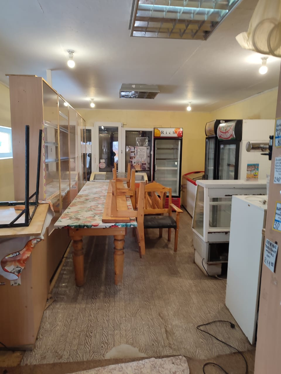 3 Магазин керамзитобетонный, фасад утеплен и обшит сайдингом, 85 м2, торговый зал + комната для персонала, с оборудованием: торговые витрины, холодильники, морозильные камеры, сплит.