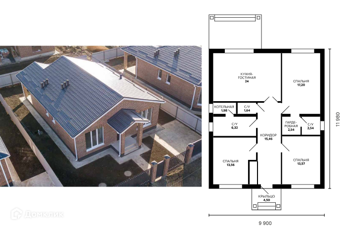 В продаже дом 119.6 квадратных метров (1-этажный) на участке 6 соток в черновой отделке. Все виды центральных коммуникаций (газ, водоканал, канализация, электричество). На территории супермаркет. Школа, детский сад, остановка общественного транспорта. Подходит под льготные ипотеки (семейная-6%, господдержка-8%). По всем вопросам звоните.