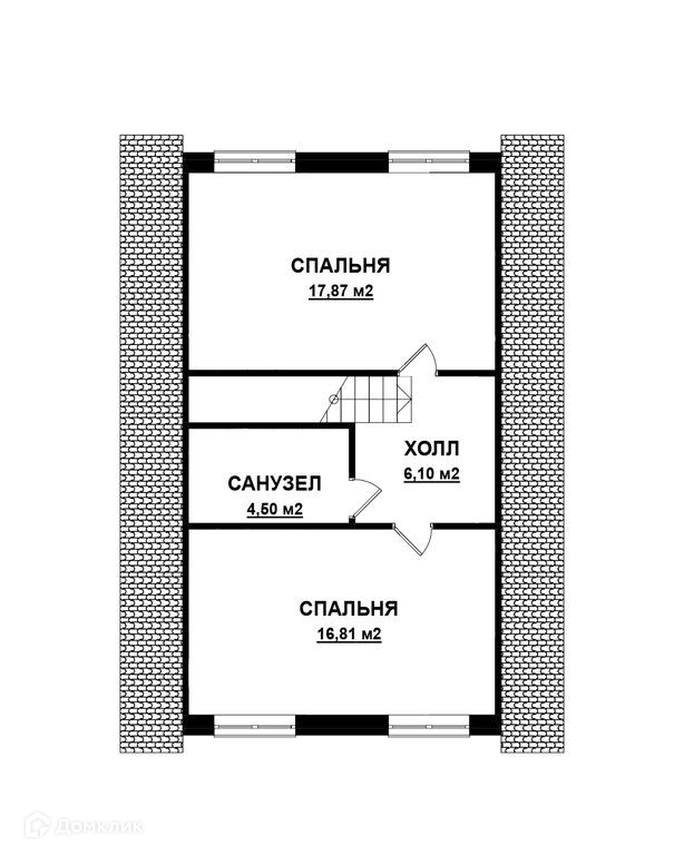 В планировке коттеджного дома 5 жилых помещений. 4 просторные спальни, две из них на втором этаже.