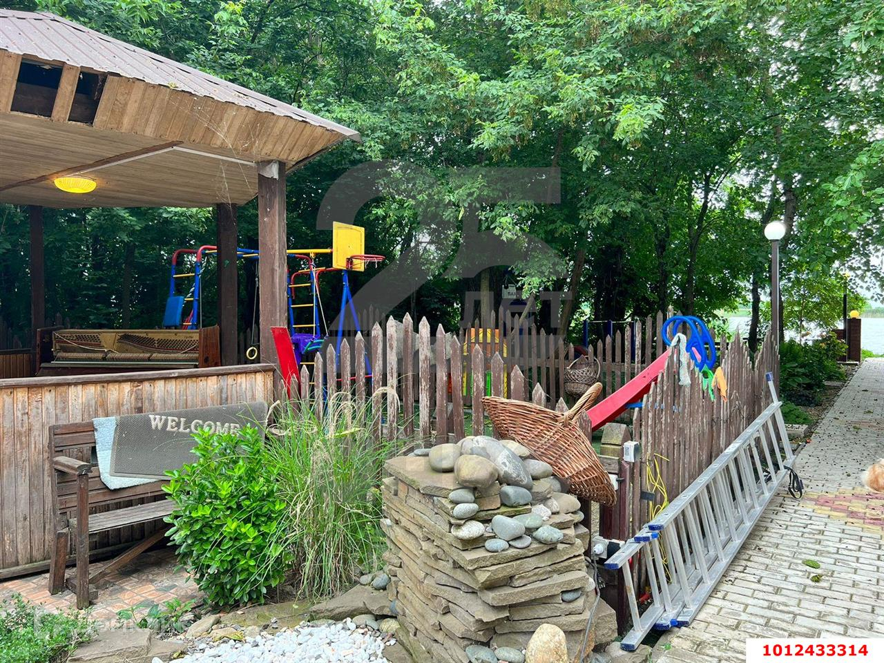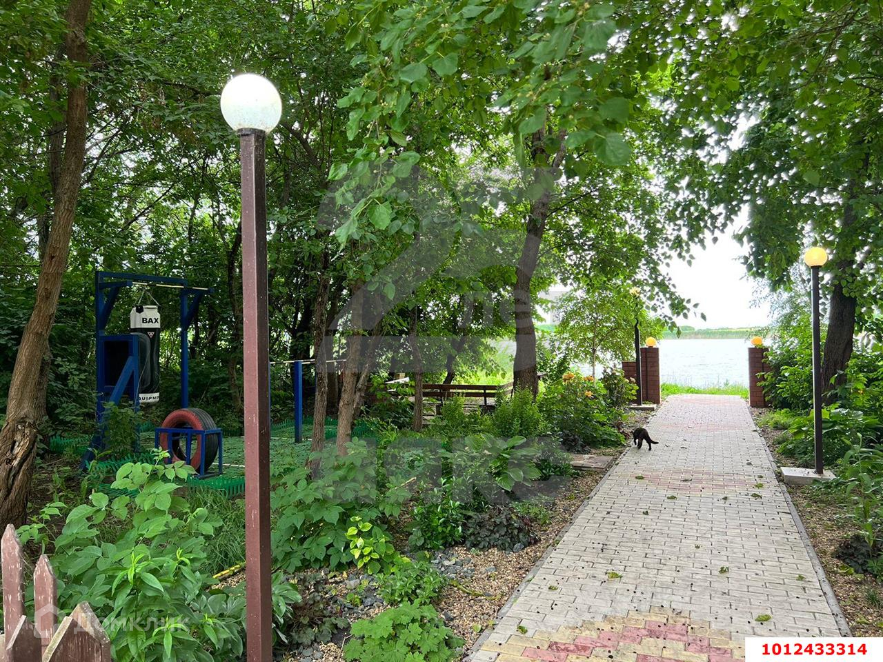 Участок по факту гораздо больше, большая зона отчуждения и большая территория за домом перед рекой. На территории участка есть бассейн, баня, летняя кухня, спортзал с подвалом, подсобные помещения, гараж.  Сделан ландшафтный дизайн, ухоженная территория с цветами, деревьями, газоном. На заднем дворе калитка с выходом к реке. За забором организованна детская площадка, беседка, хозяйственные помещения и вольеры для животных и домашних птиц.