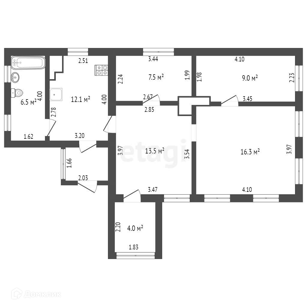 Общая площадь 64.9 м2