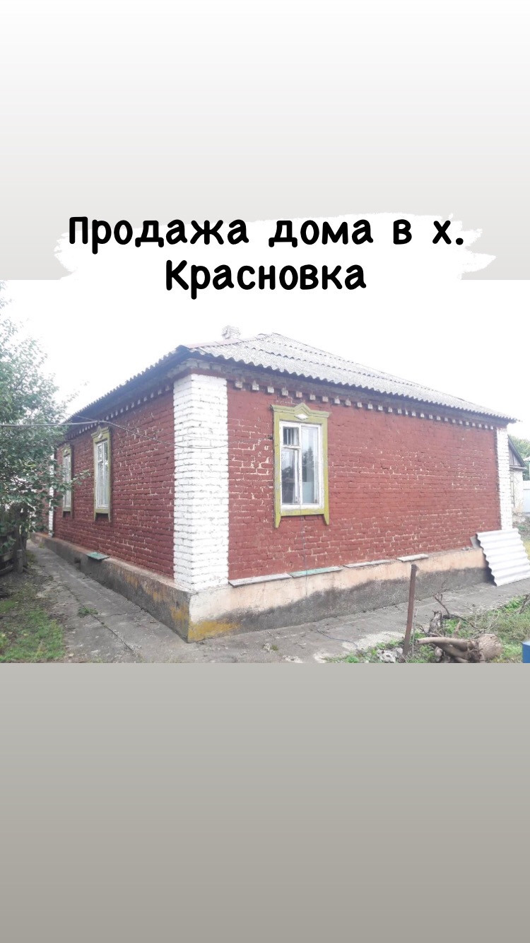 Продажа дома в х. Красновка . Дом общей площадью 78,9 м2 , 5 комнат. Дом газифицирован. Под ремонт . Участок 9 соток земли, есть навес , хозяйственные постройки, летняя кухня.