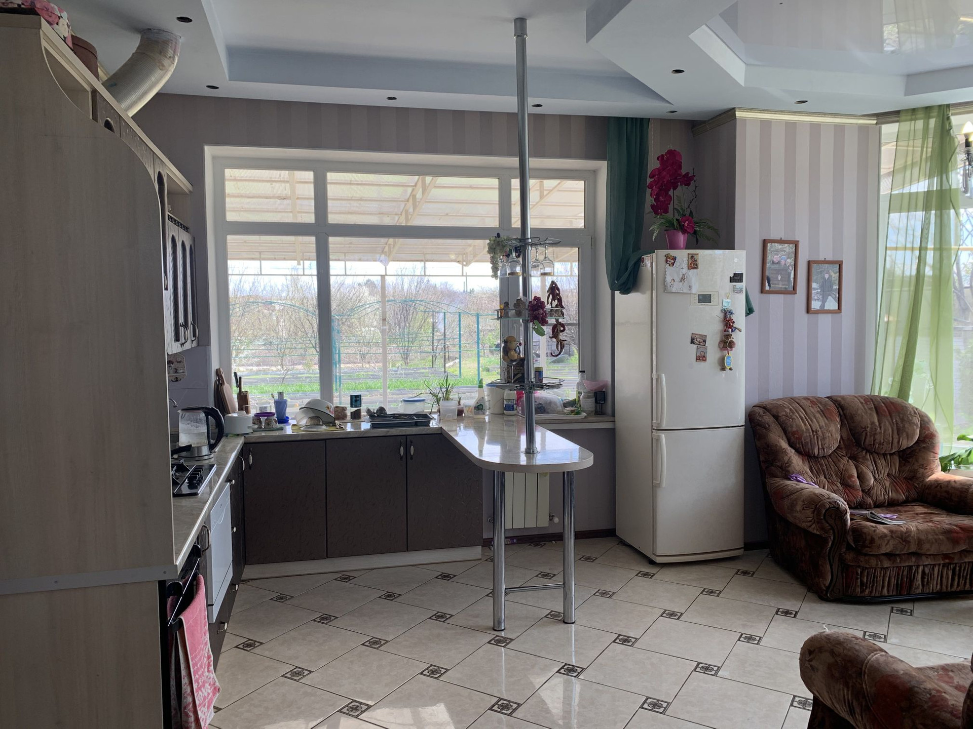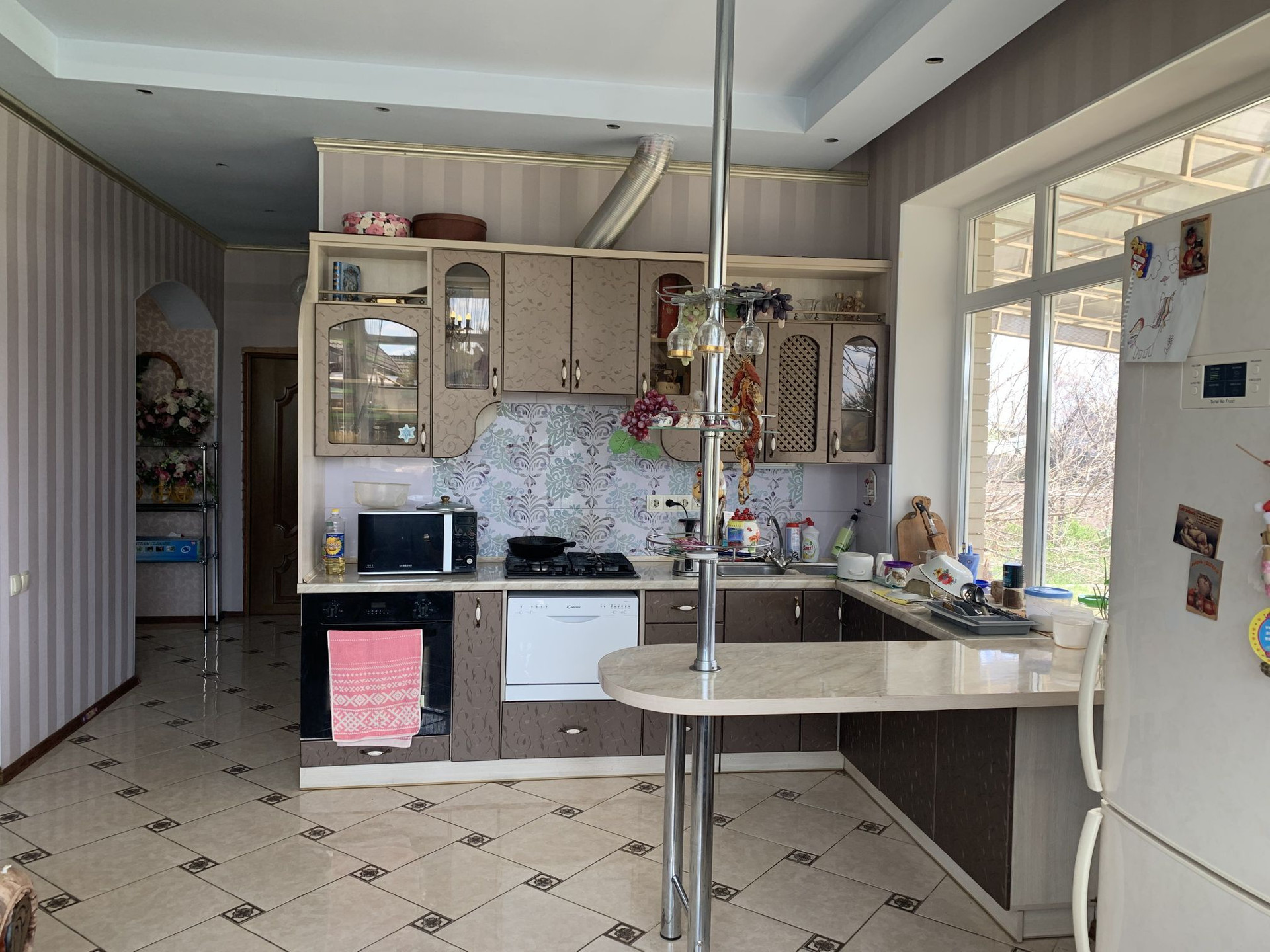 . Общая площадь дома 102м2, три комнаты.Теплый пол на кухне.Остается встроенная кухня.