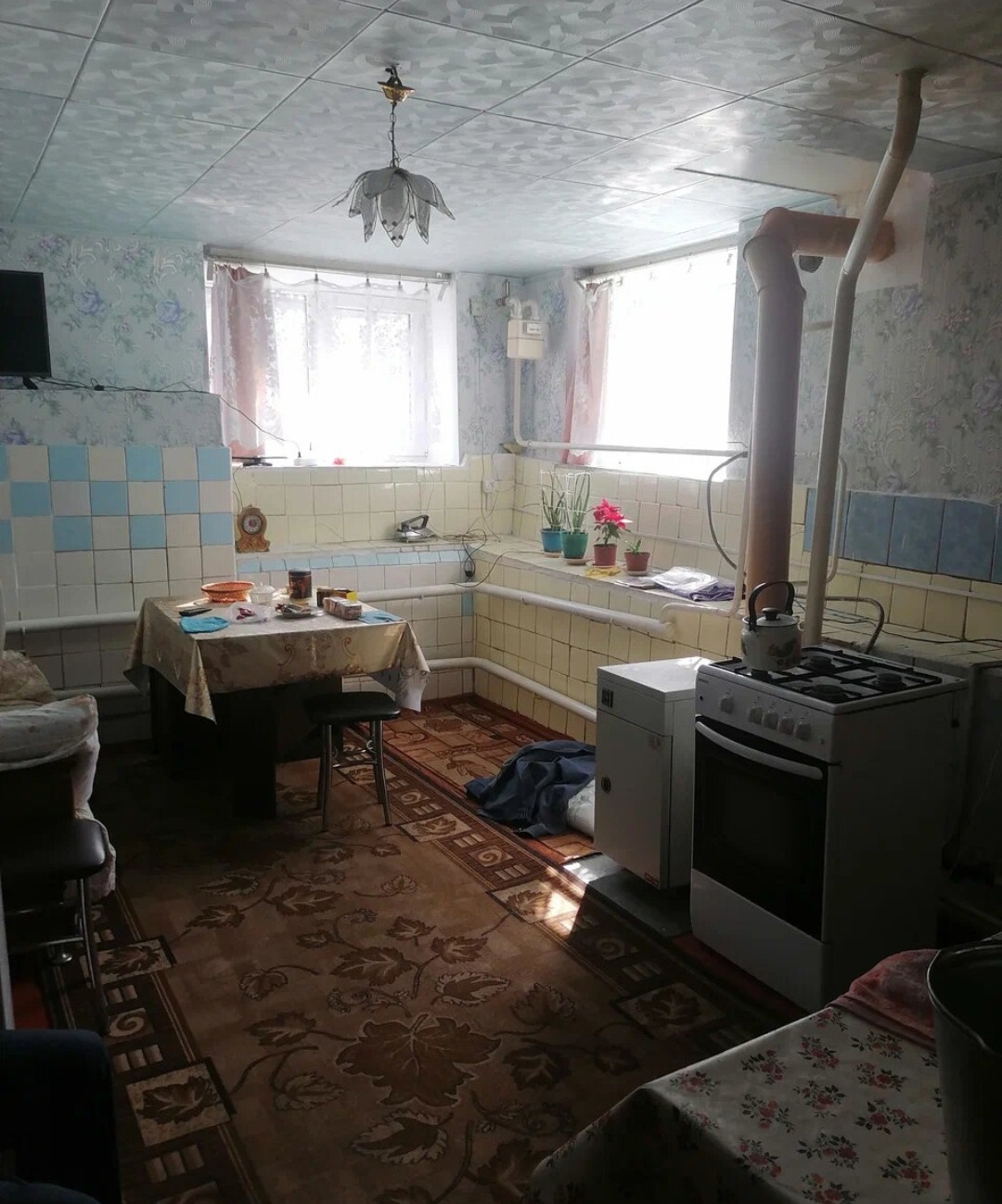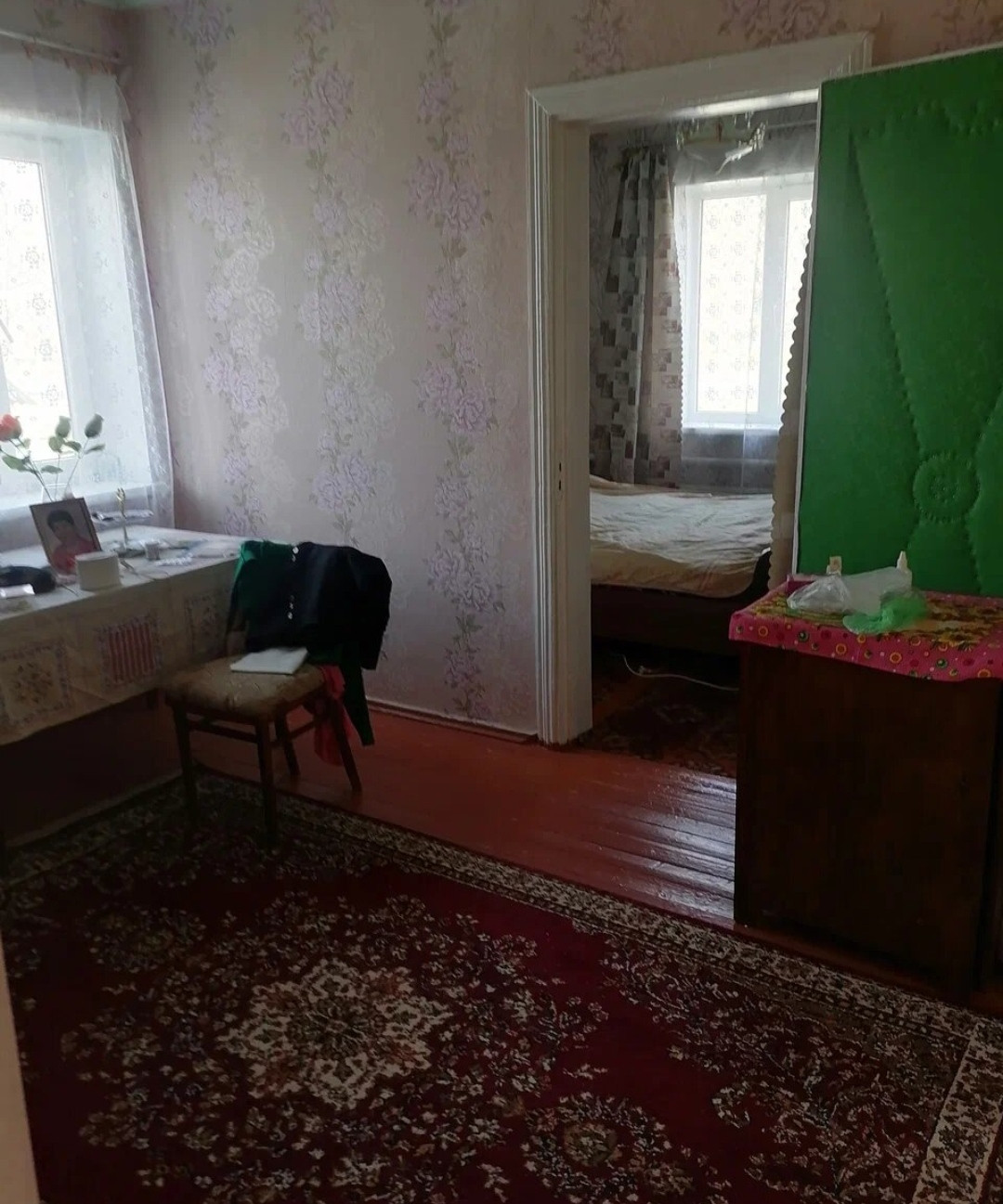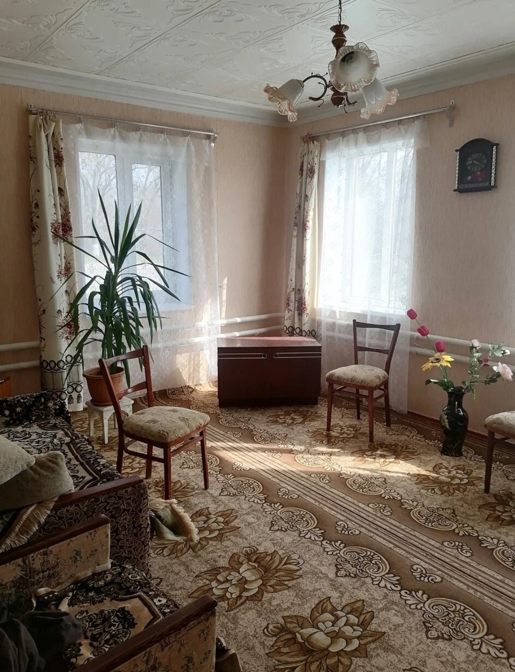 Общая площадь 100 кв. м. В доме 5  комнат, кухня 17 кв. м. Хорошее жилое состояние. Окна м/п. Высокий потолок.