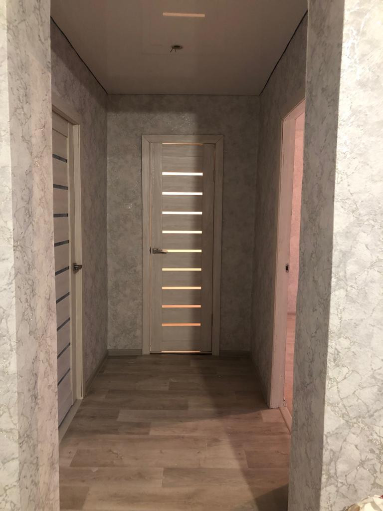квартира трехкомнатная, комнаты изолированные, санузел раздельный,  лоджия застеклена длиной 12 м, совершенно новый ремонт (никто после ремонта не проживал), новые межкомнатные двери, просторный широкий коридор, есть возможность сделать индивидуальное отопление, детский сад и школа рядом, супермаркеты, остановка