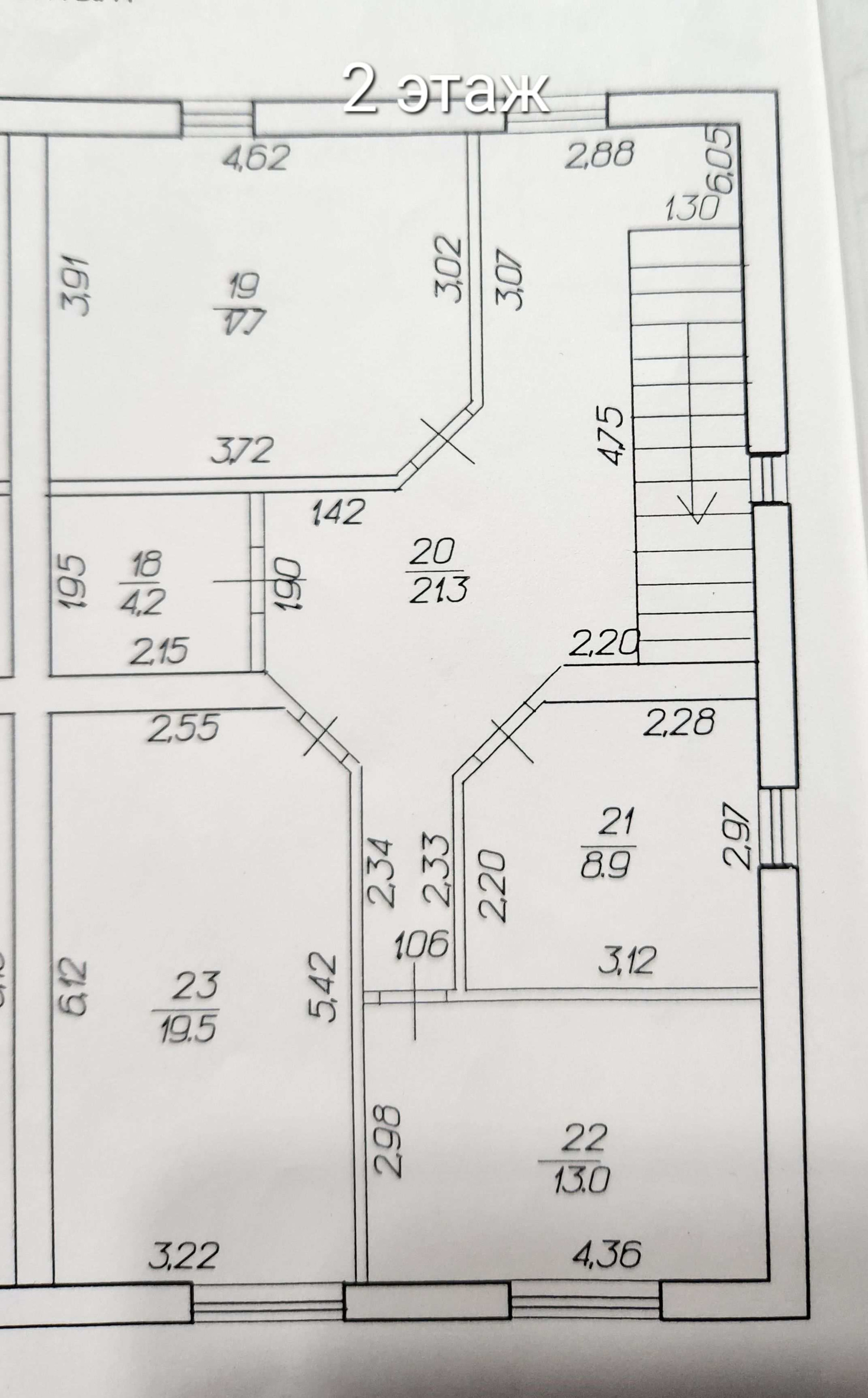2 этаж: четыре раздельные комнаты, санузел и просторный холл.