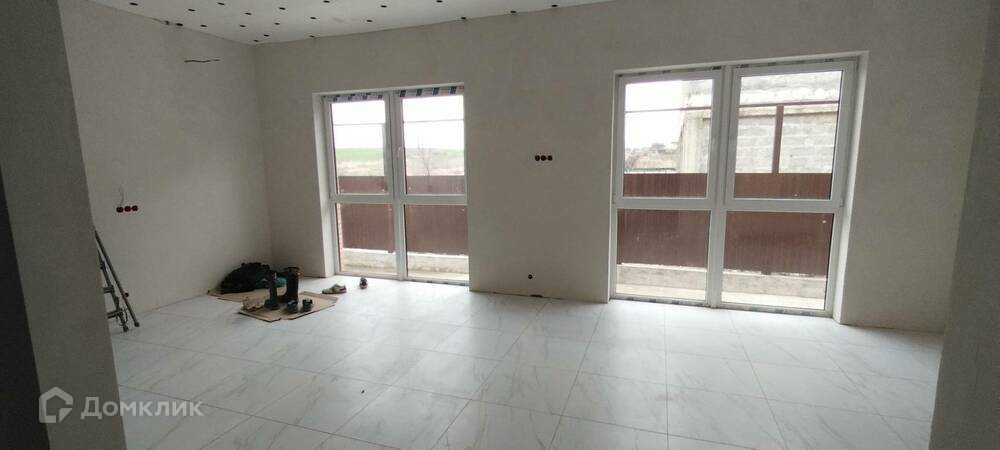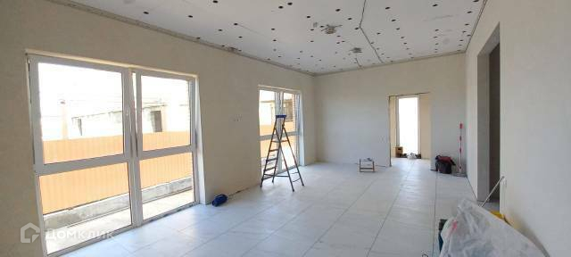 * Стены- обои (винил/флизелин, можно под покраску); пол- плитка; натяжные матовые белые потолки, установлены розетки и выключатели, розетки под сплит систему, во всем доме теплый пол.