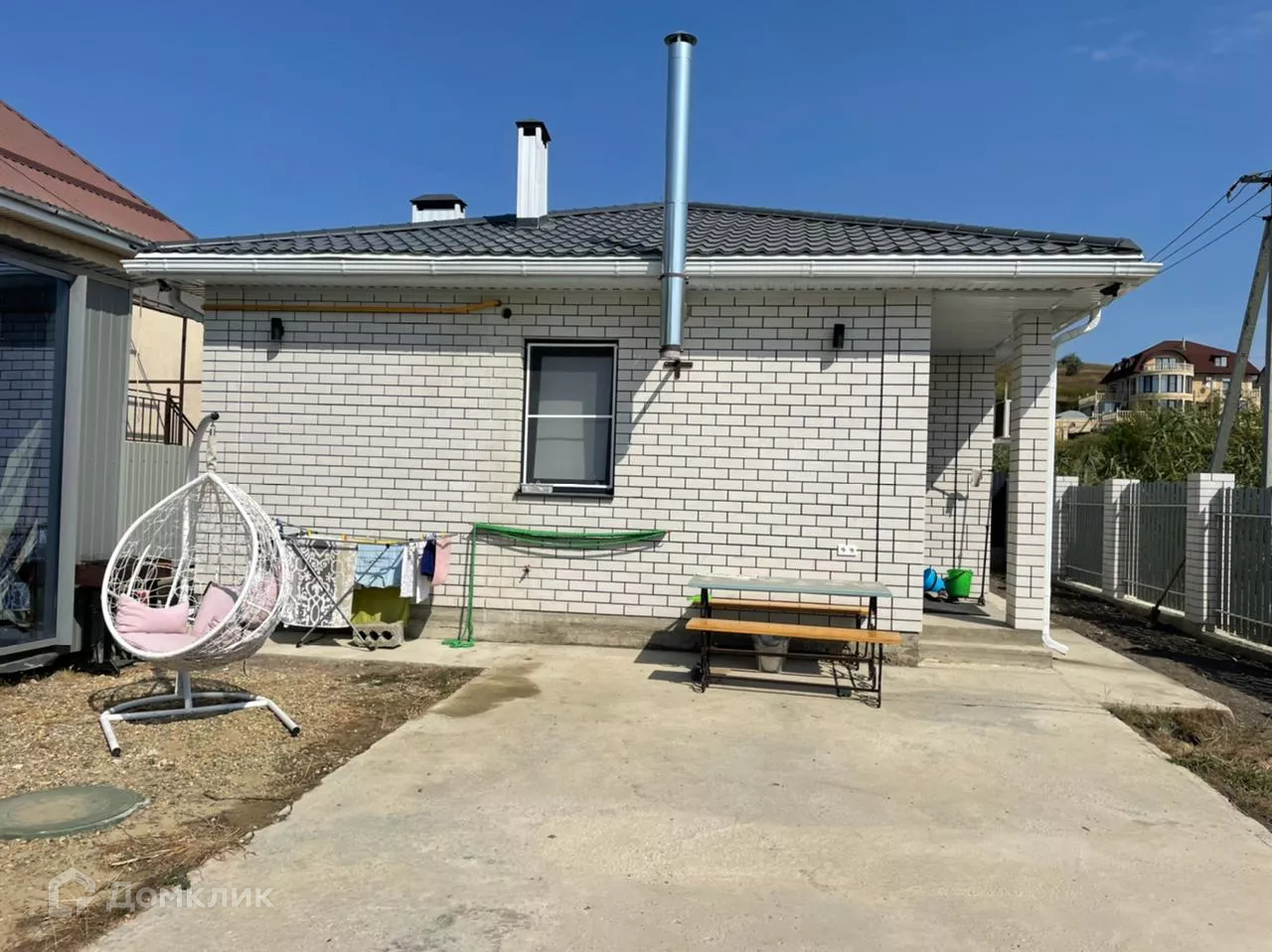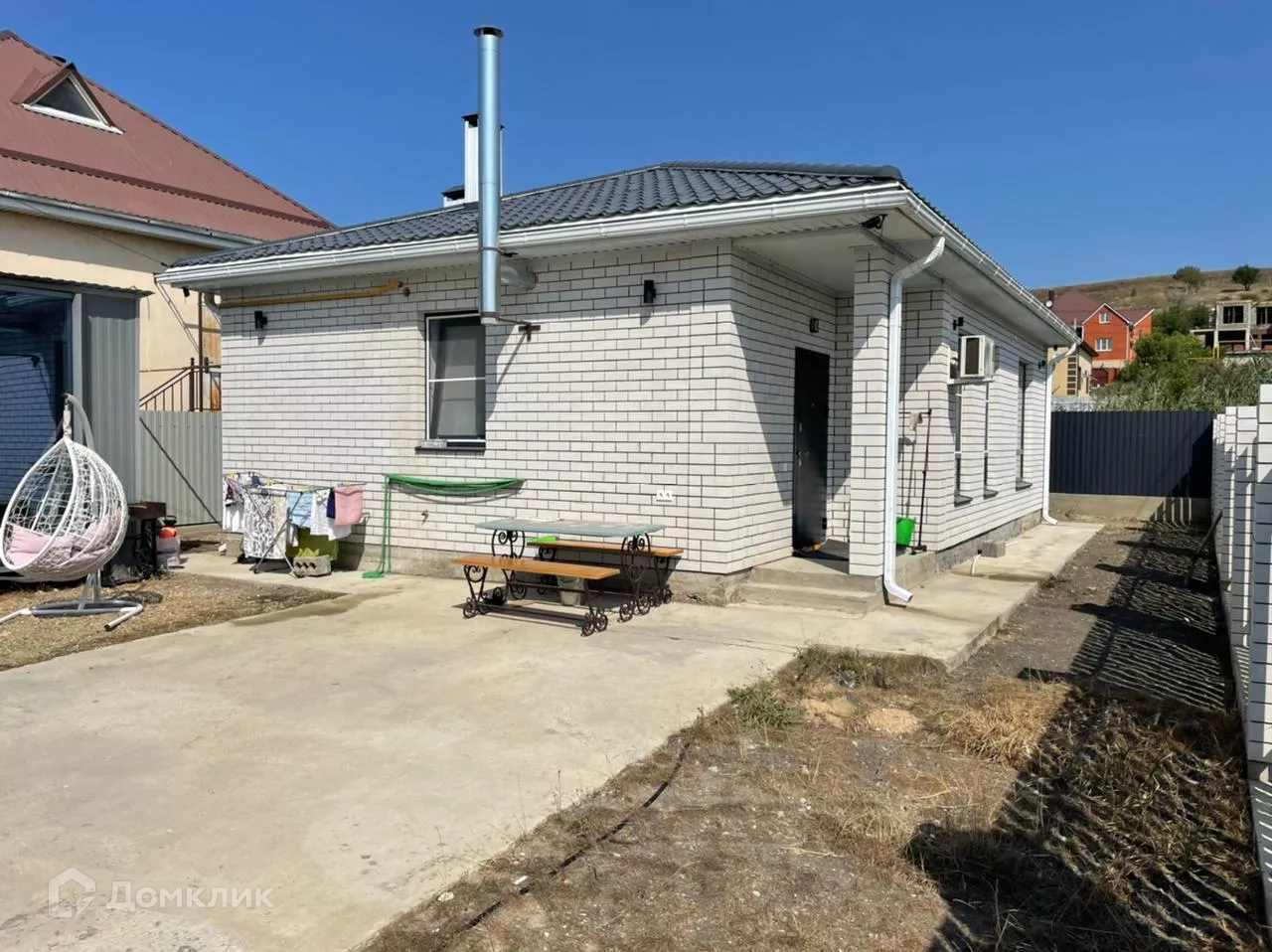 ID-40058. Продается дом 71 кв.м., 3 сотки земли ИЖС, под ключ с ремонтом, техникой и мебелью, заходи и живи, ближайший пригород Анапы. До моря 3 км.  В доме 2 спальни, кухня гостиная. Во дворе так же имеется домик гостевой, можно сделать как студию, с большими панорамными окнами. Дом облицован кирпичом. Все коммуникации заведены, сплит системы, тёплые полы, во дворе имеется заезд под машину, около двора 5 парковочных мест, дом угловой.Звонки принимаются: Пн-Пт 9:00 - 18:00. Сб - 11:00 - 14:00