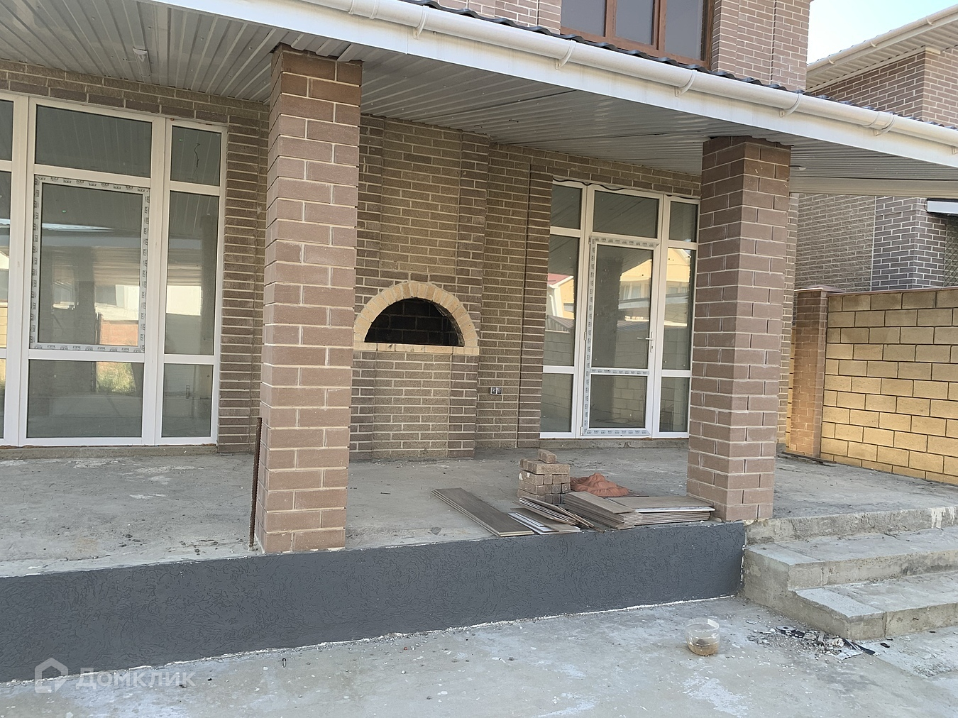 В доме - большая кухня-гостиная с камином,  с улицы сделана  зона барбекю,  гардеробная, на втором этаже 3 комнаты, 2 санузла, котельная.