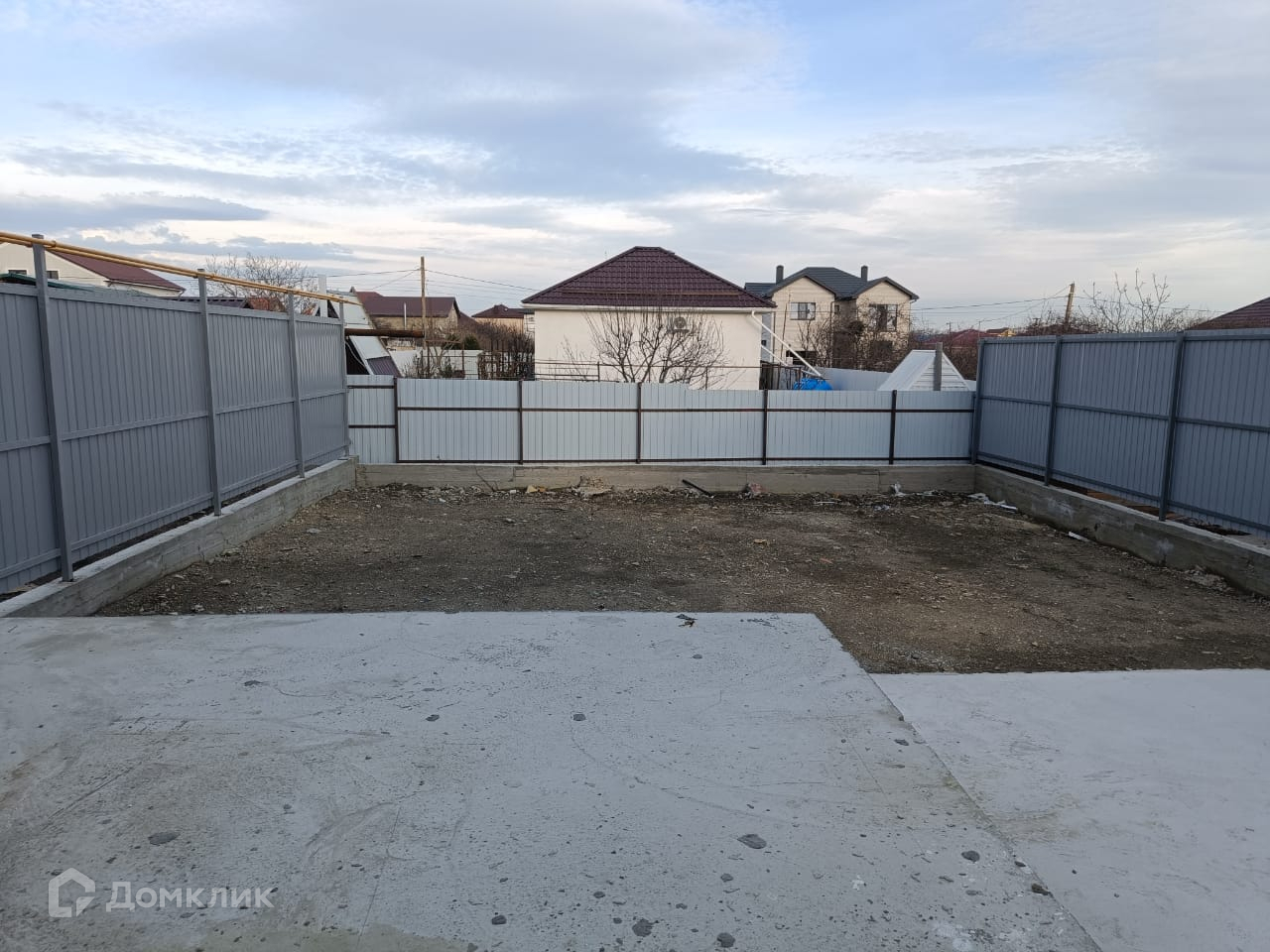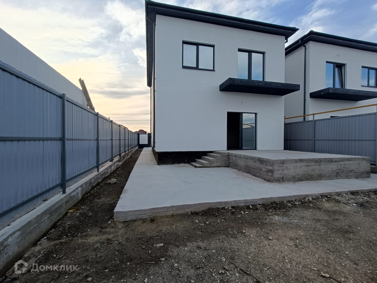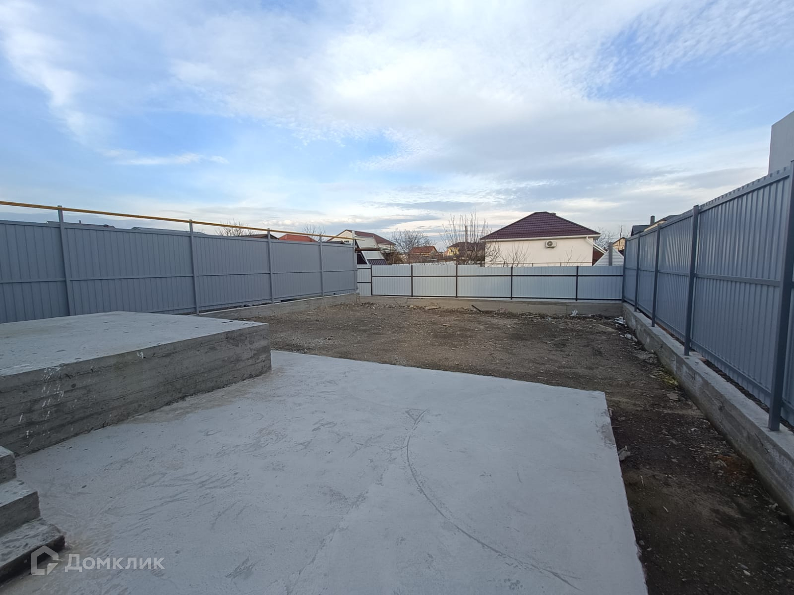Дом обнесен в круговую забором установлены калитка и ворота, парковочное место, террасса, тротуары и отмостка залиты бетоном.