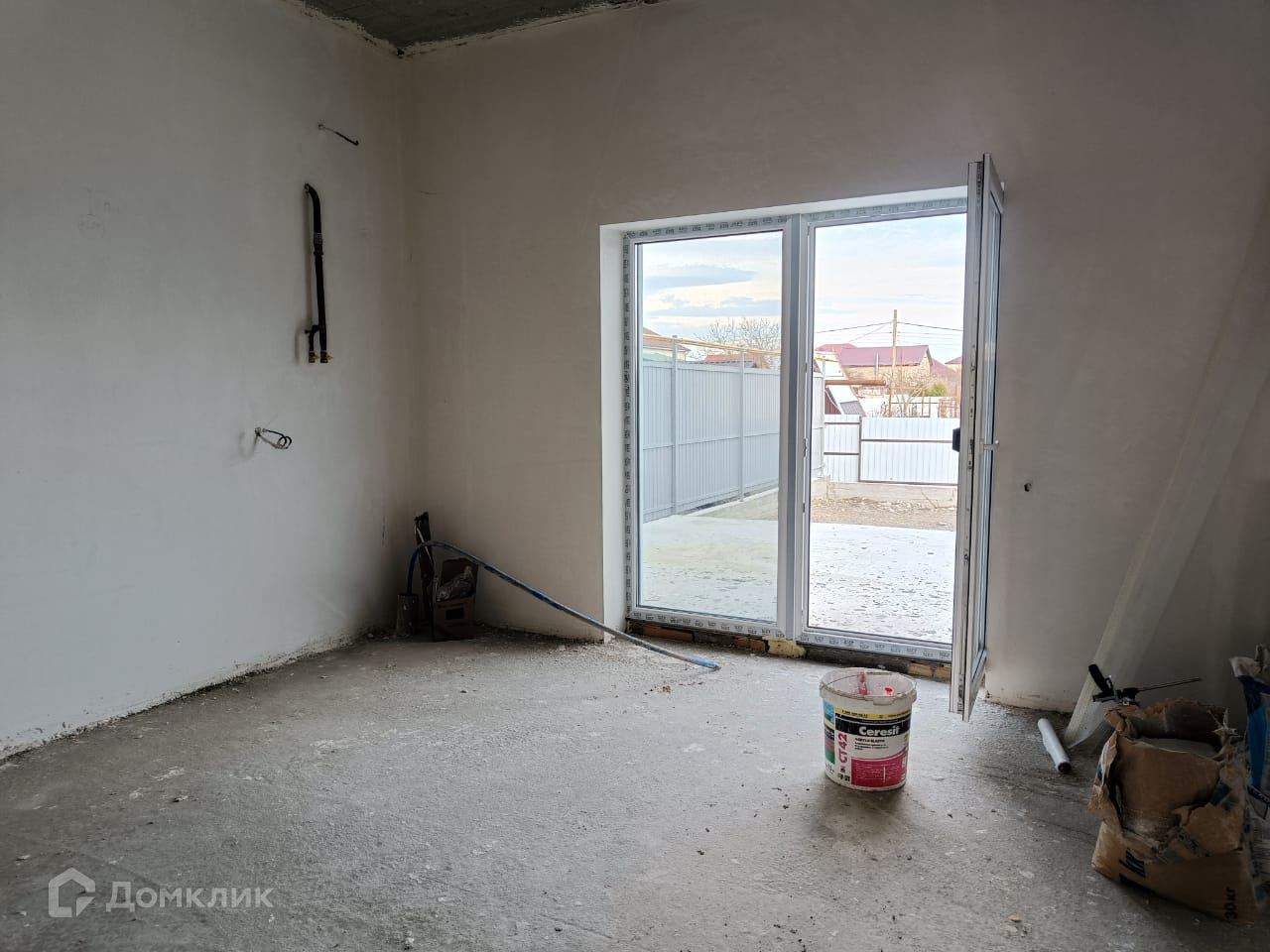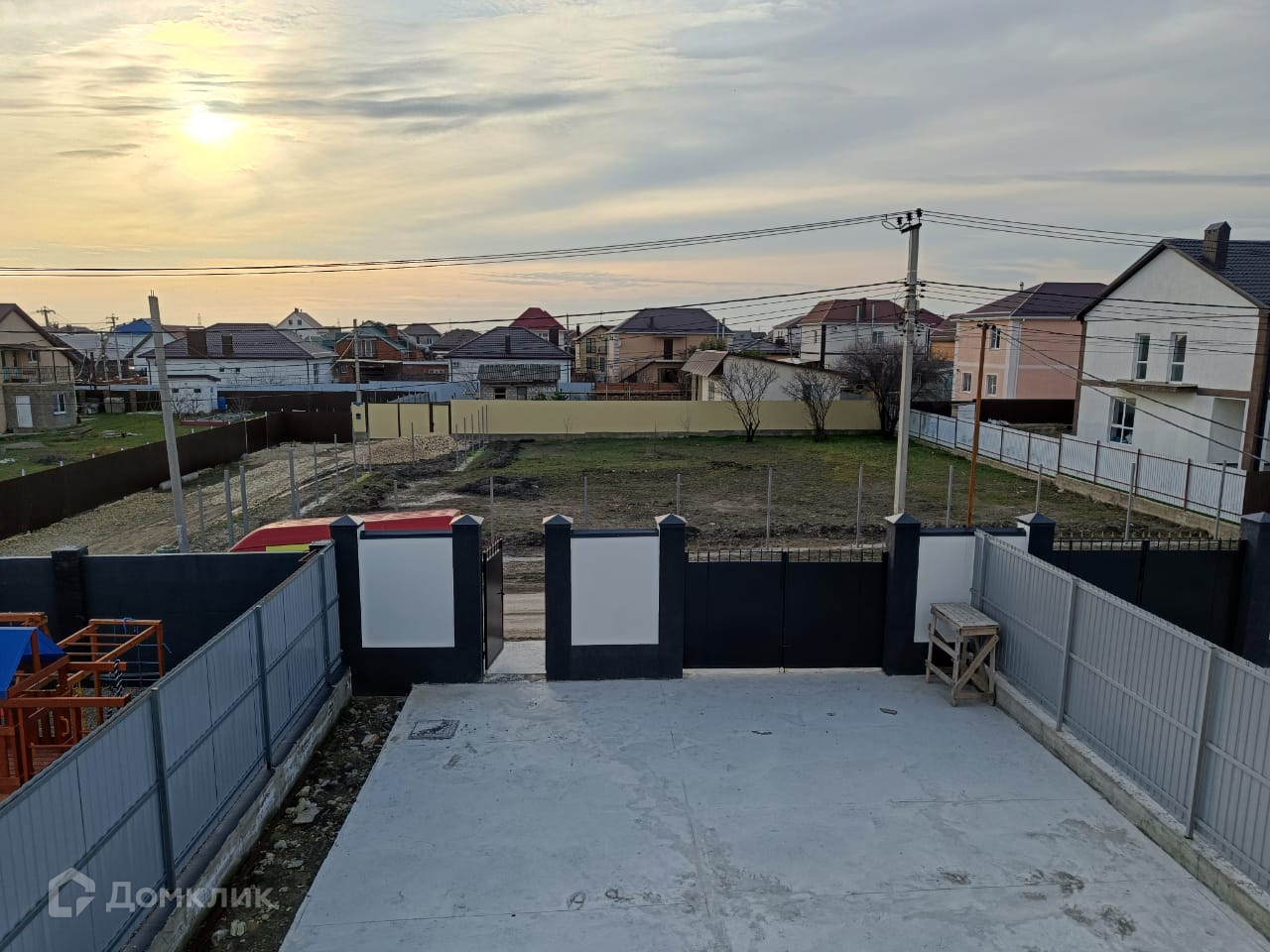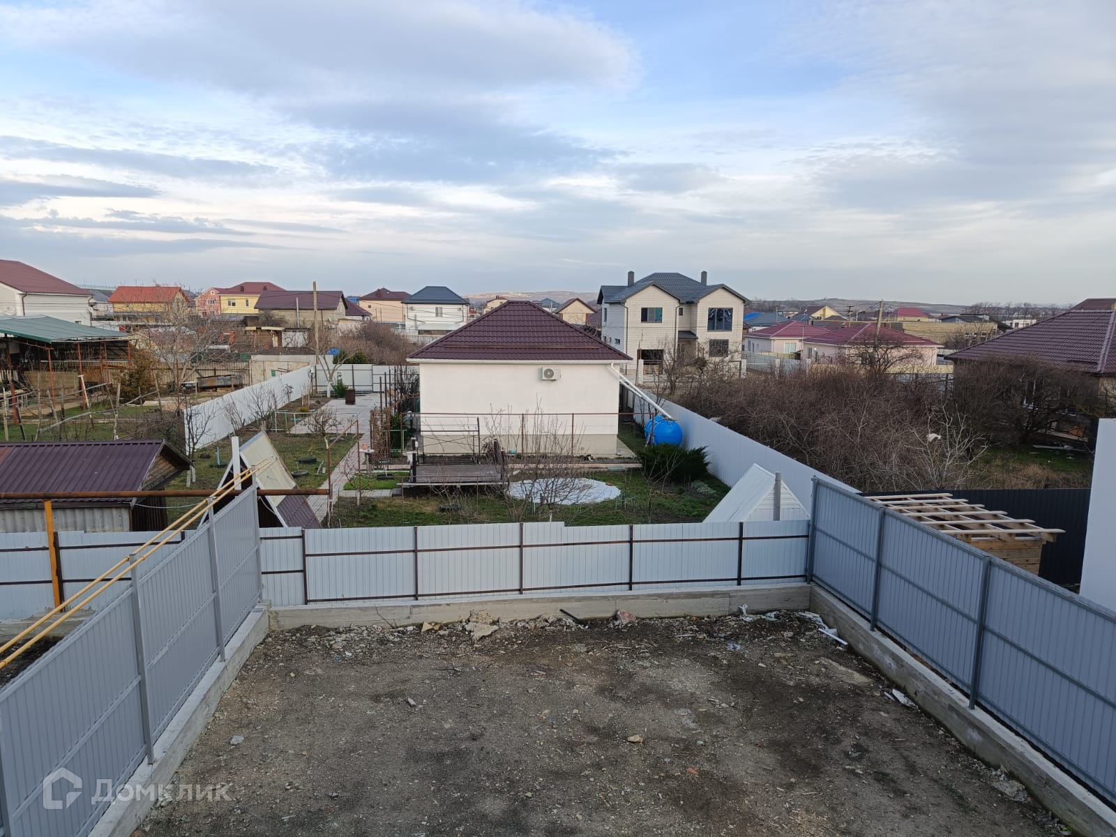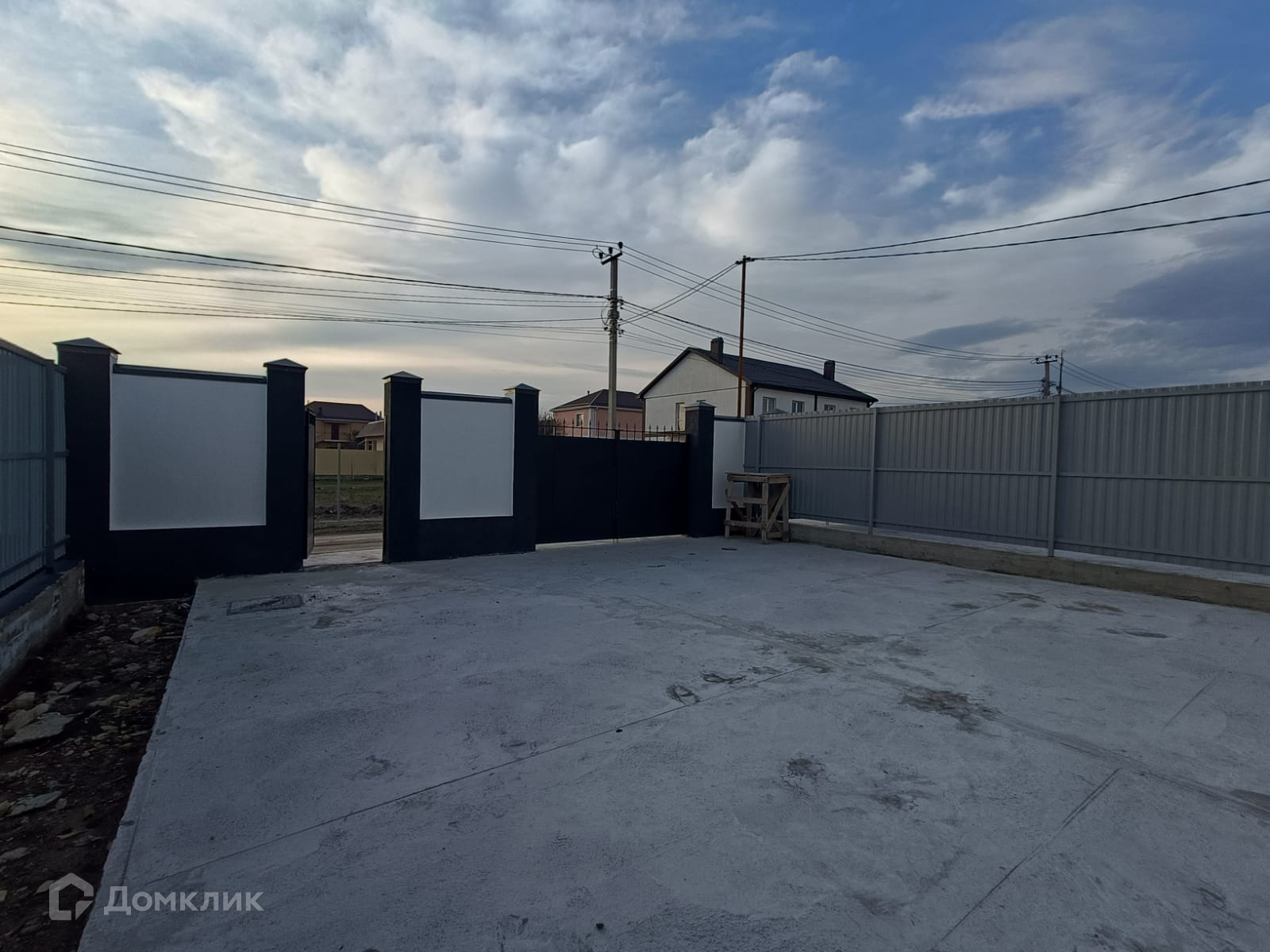 Дом обнесен в круговую забором установлены калитка и ворота, парковочное место, террасса, тротуары и отмостка залиты бетоном.