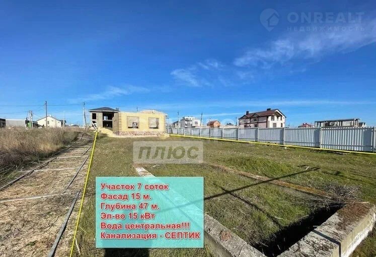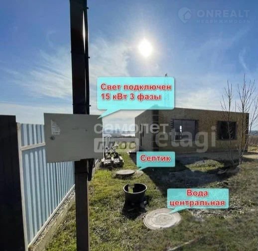 Коммуникации : вода центральная, газ (по меже) , свет 15 кВт подключен, септик.