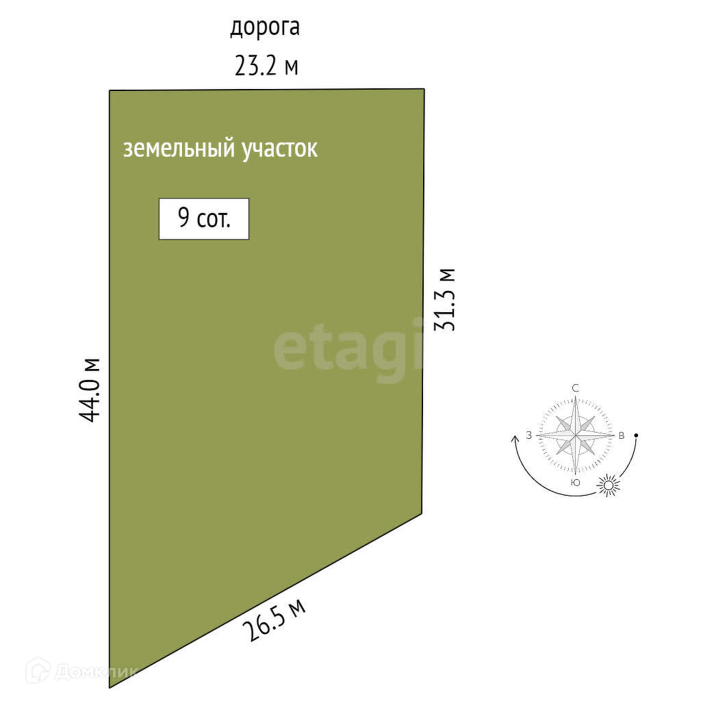 Площадь участка 9 сот.