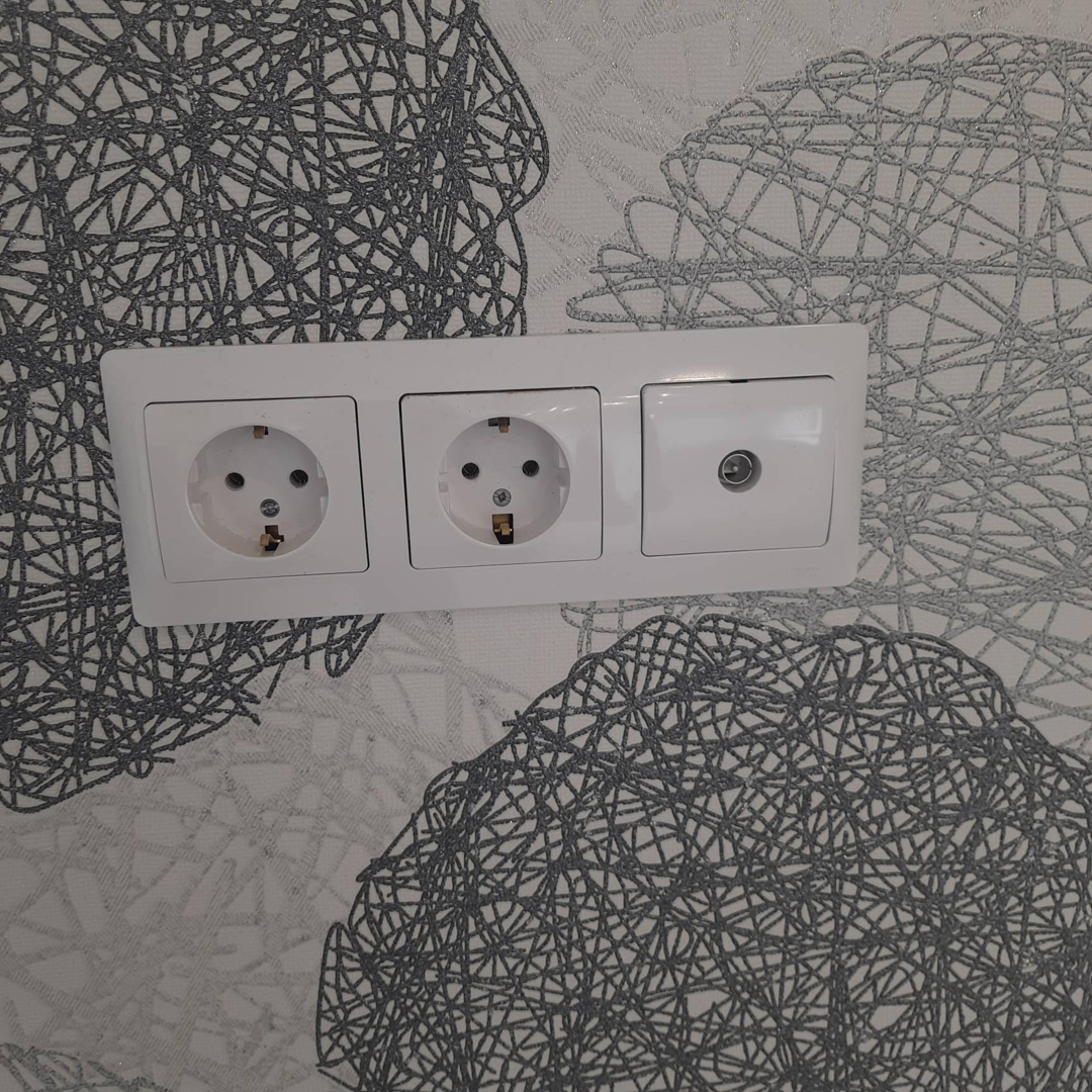 Розетки , выключатели установлены.