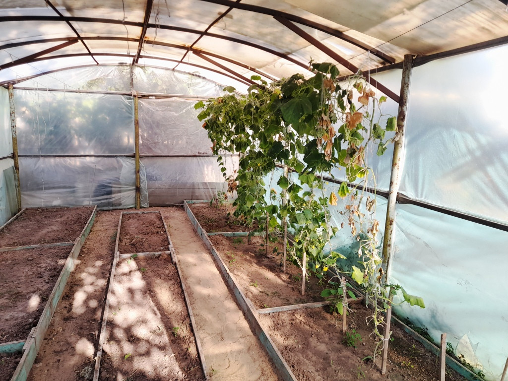 Во дворе: гараж, сарай, баня, туалет, летний душ, теплица.